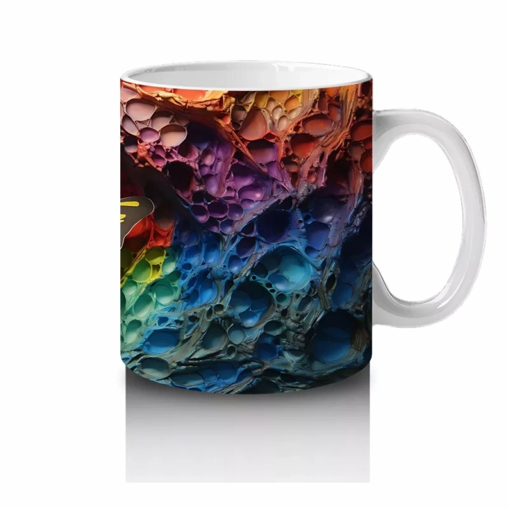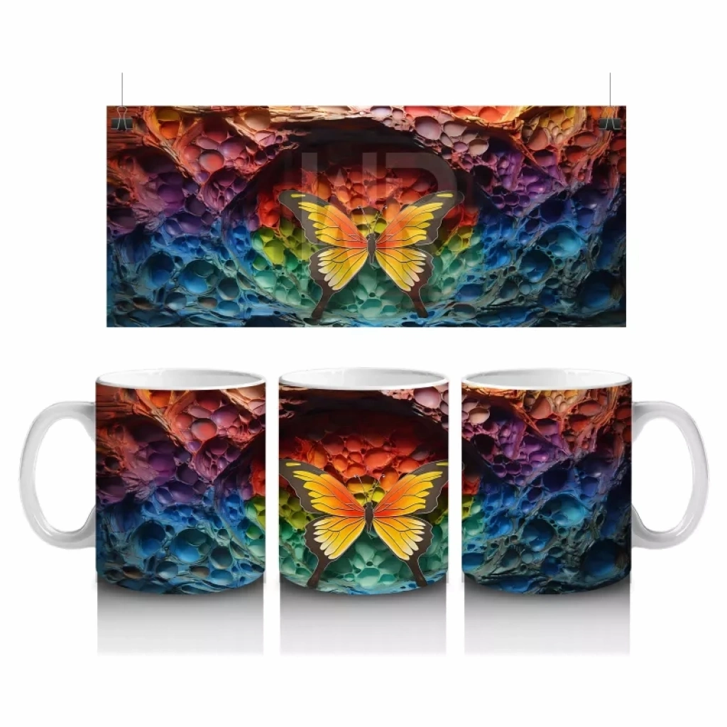 Renkli Kaya Oyuntusunda Turuncu Kelebek – Baskılı Kahve Kupası