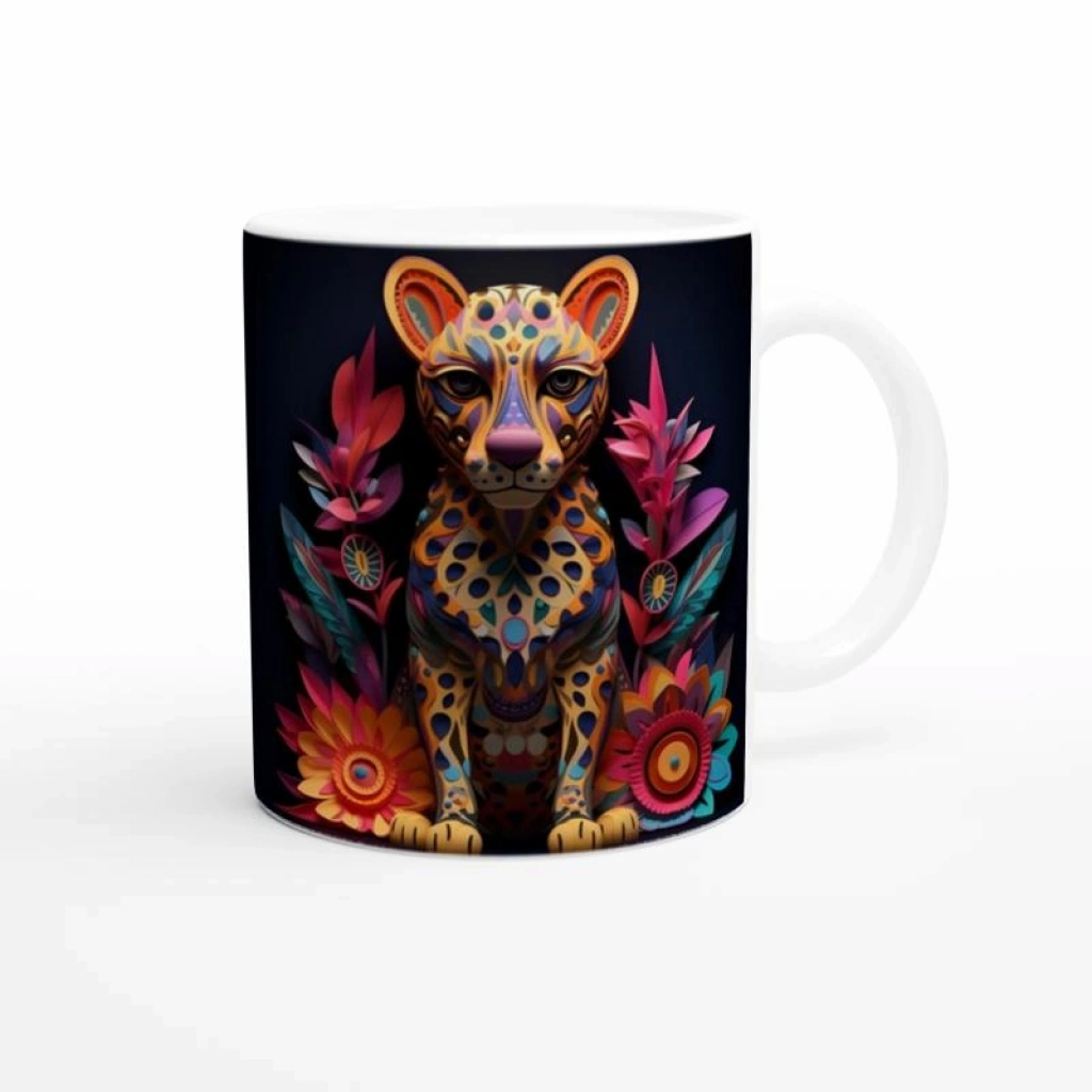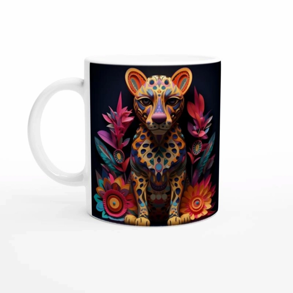 Cesur renklerle bezenmiş leopar ve çiçek kompozisyonu, her yudumda sizi tropikal bir hayal dünyasına götürecek.