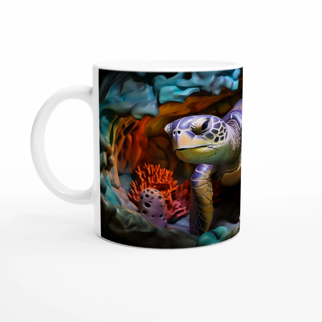 Detaylı kabuk deseni ve yumuşak ışık geçişleriyle tasarlanan bu kaplumbağalı kupa bardak, her yudumda huzurlu bir okyanus deneyimi sunuyor.
