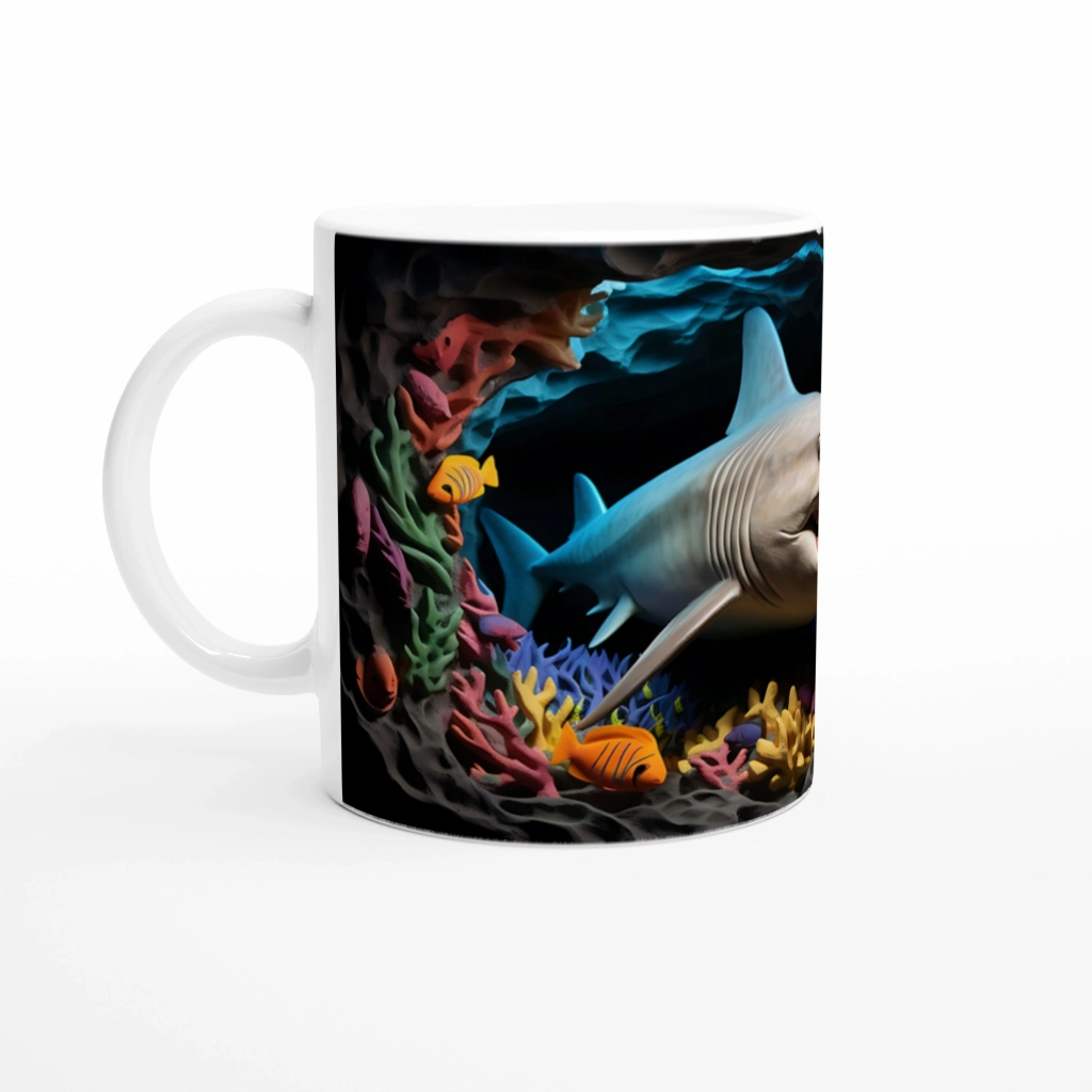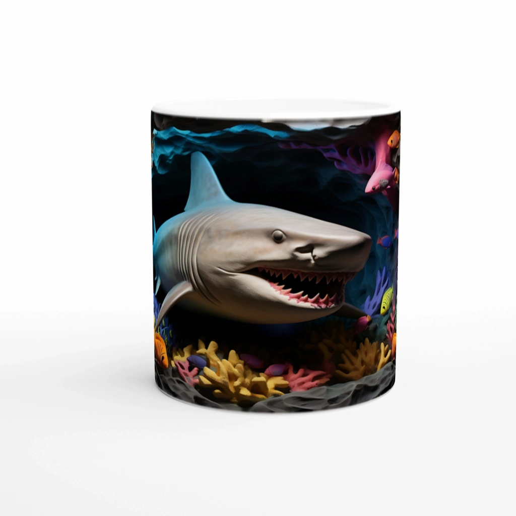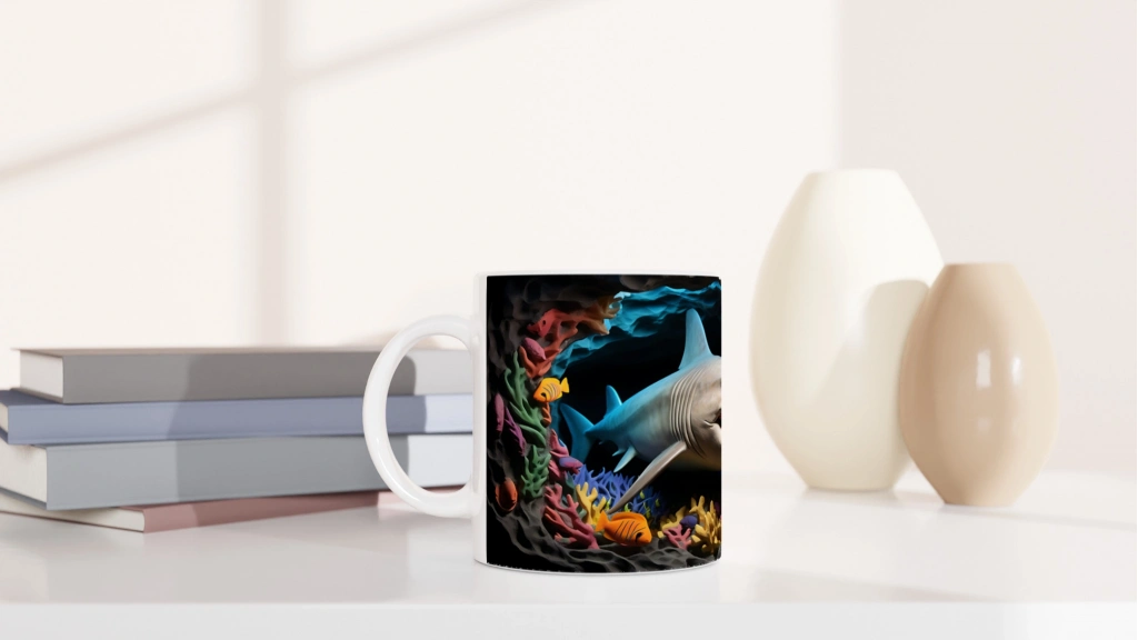Zengin renk paleti ve hareketli kompozisyonuyla öne çıkan bu kupa bardak, su altı yaşamını sevenler için eğlenceli ve özgün bir hediye seçeneği.