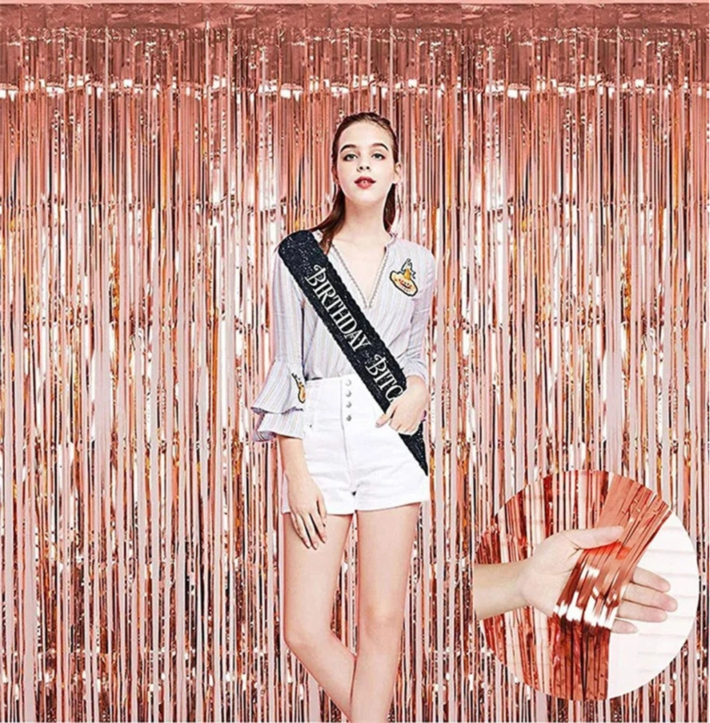 Rose Gold Püsküllü Kapı Perdesi - Parti, Bekarlığa Veda, Doğum Günü 1x2 M