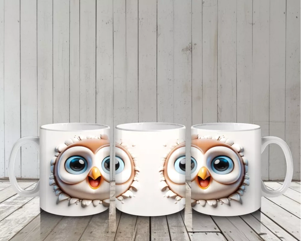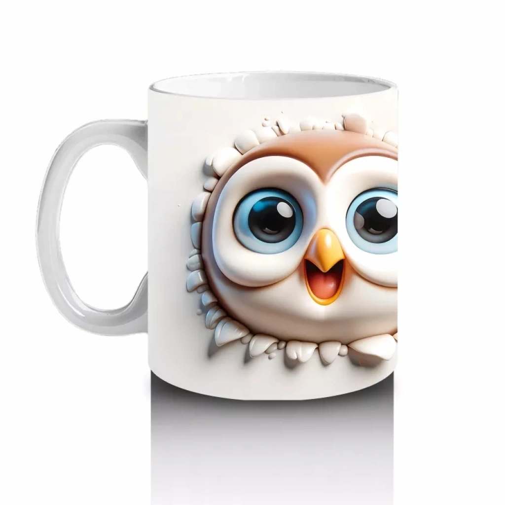 Meraklı ve şaşkın bakışlarıyla öne çıkan bu neşeli baykuş çifti, eğlenceli ruhlarıyla her ortama neşe katıyor. Mizahi ve sevimli karakterleri sevenler için benzersiz bir kupa tasarımı.