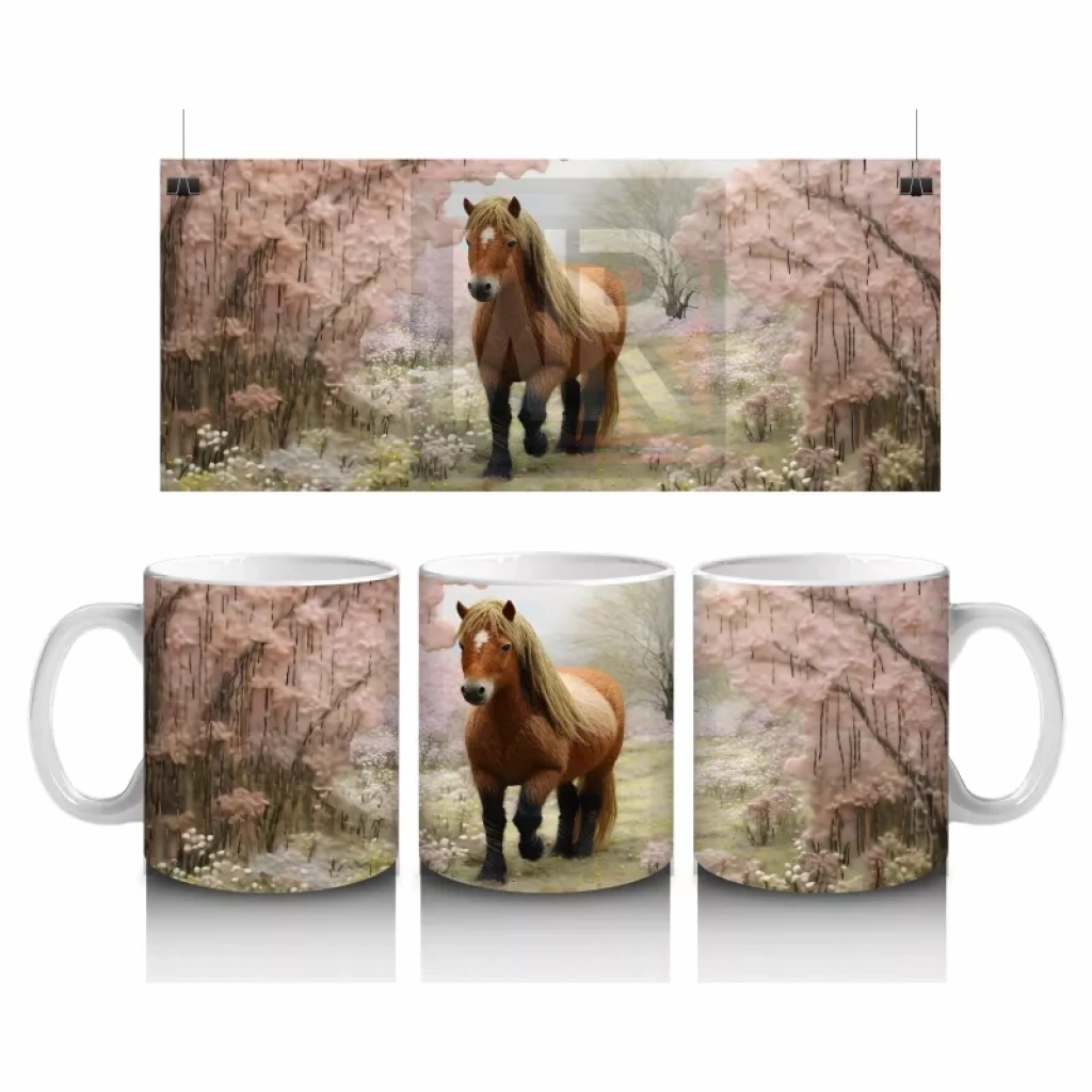 Sakura ağaçları arasında yürüyen gerçekçi at illüstrasyonu, zarafet ve huzuru bir arada sunuyor. Estetik ve sakin detayları tercih edenler için özel bir kupa.