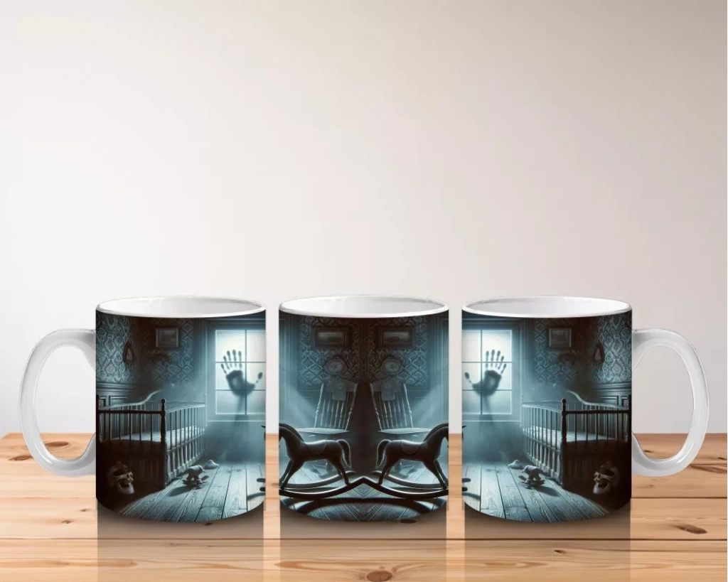 Sandalyede Oturan Hayalet Figürlü Gotik Cadılar Bayramı Baskılı Kupa Bardak