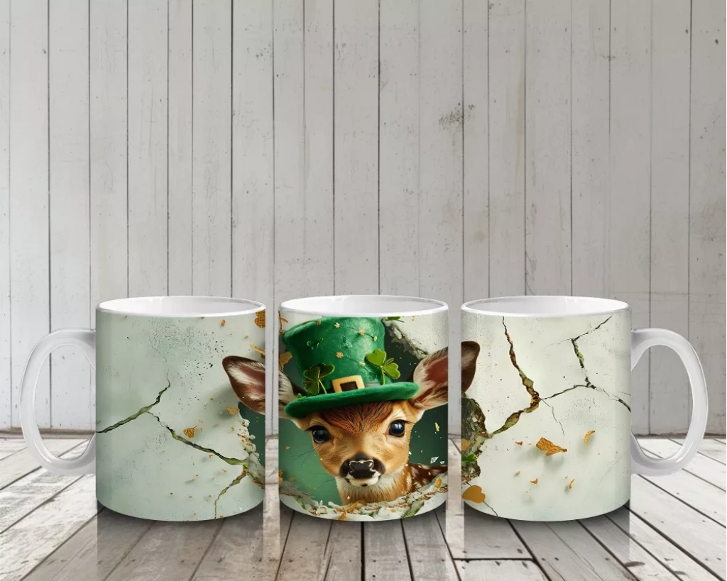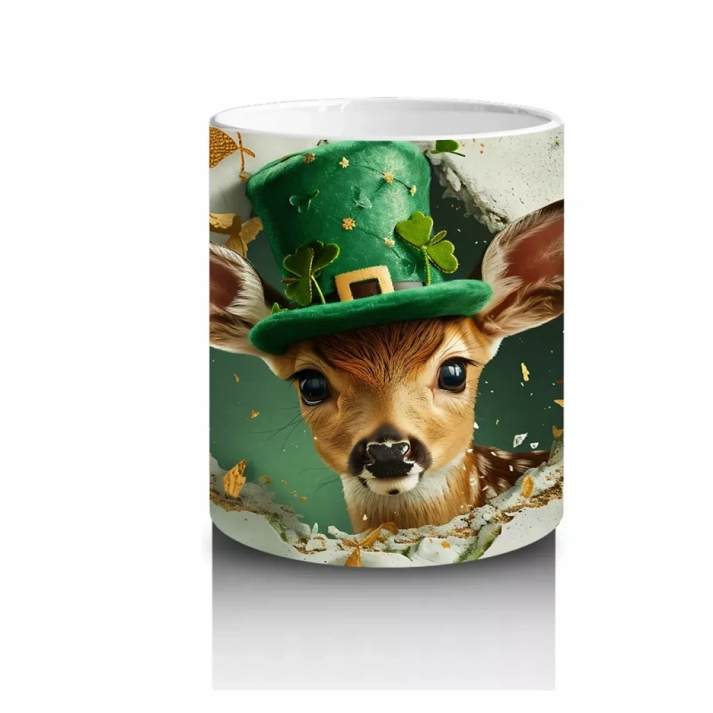 Şapkalı Fil ve Dört Yapraklı Yoncalar – Baskılı Kahve Kupası