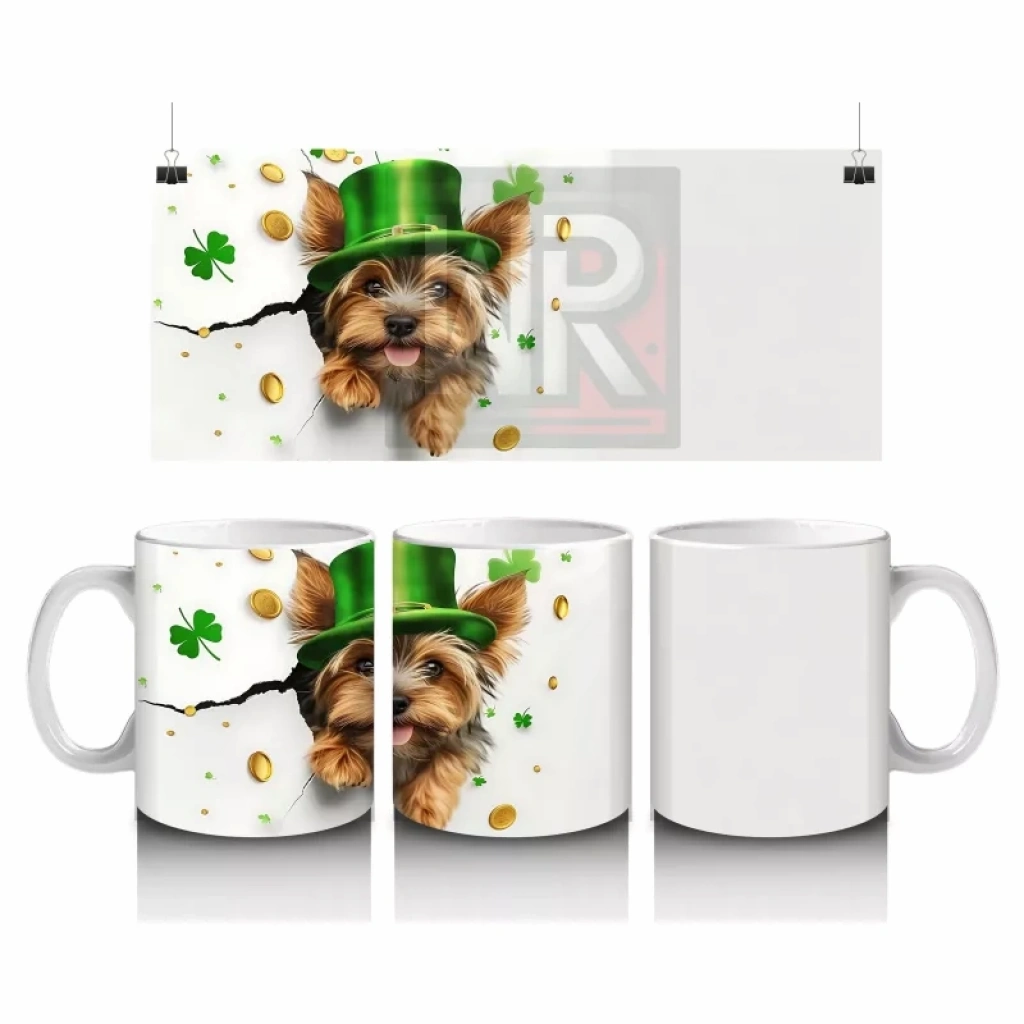 Şapkalı St. Patrick’s Temalı Yorkshire Terrier – Baskılı Kahve Kupası