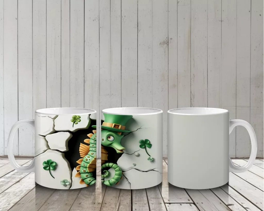Şapkalı Yeşil Timsah ve Yonca Yaprakları – Baskılı Kahve Kupası