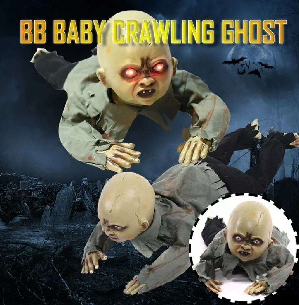 Sesli Işıklı Ve Sensörlü Yerde Emekleyen Hareketli Bebek Hayalet Zombi Dekor 30x85 Cm