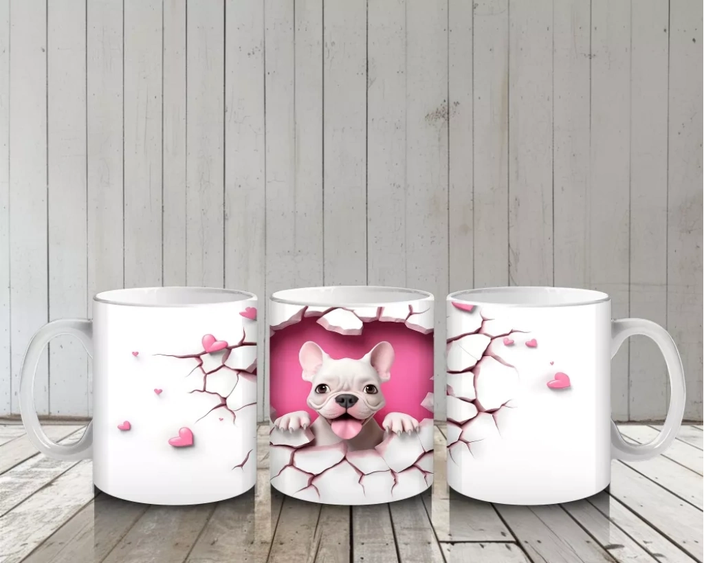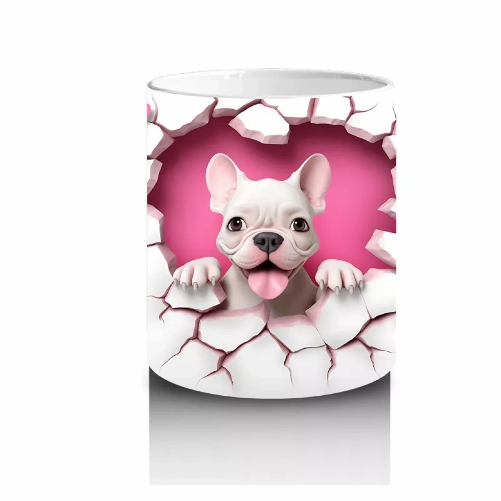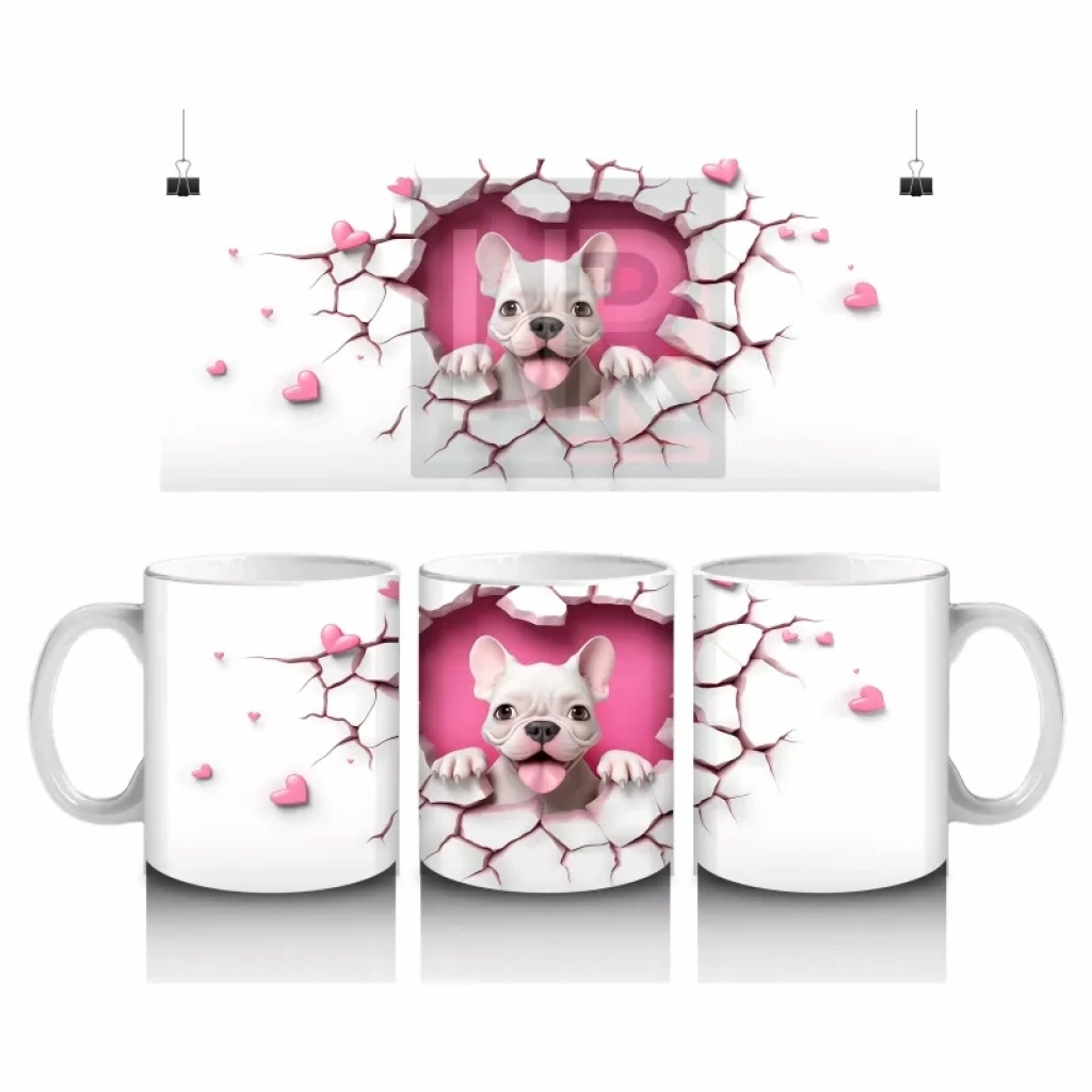 Pembe kalplerle çevrili sevimli Fransız Bulldog, tatlı ve neşeli bir atmosfer yaratıyor. Romantik ve sıcak detayları bir arada sunan özel bir tasarım.