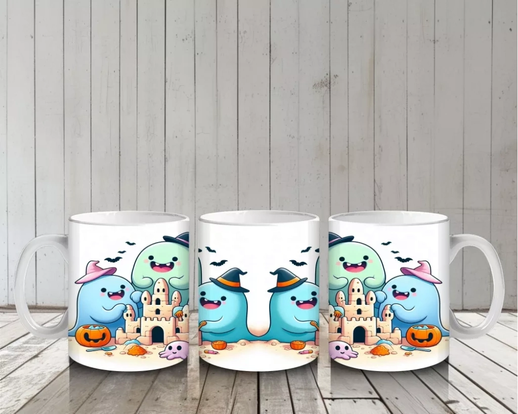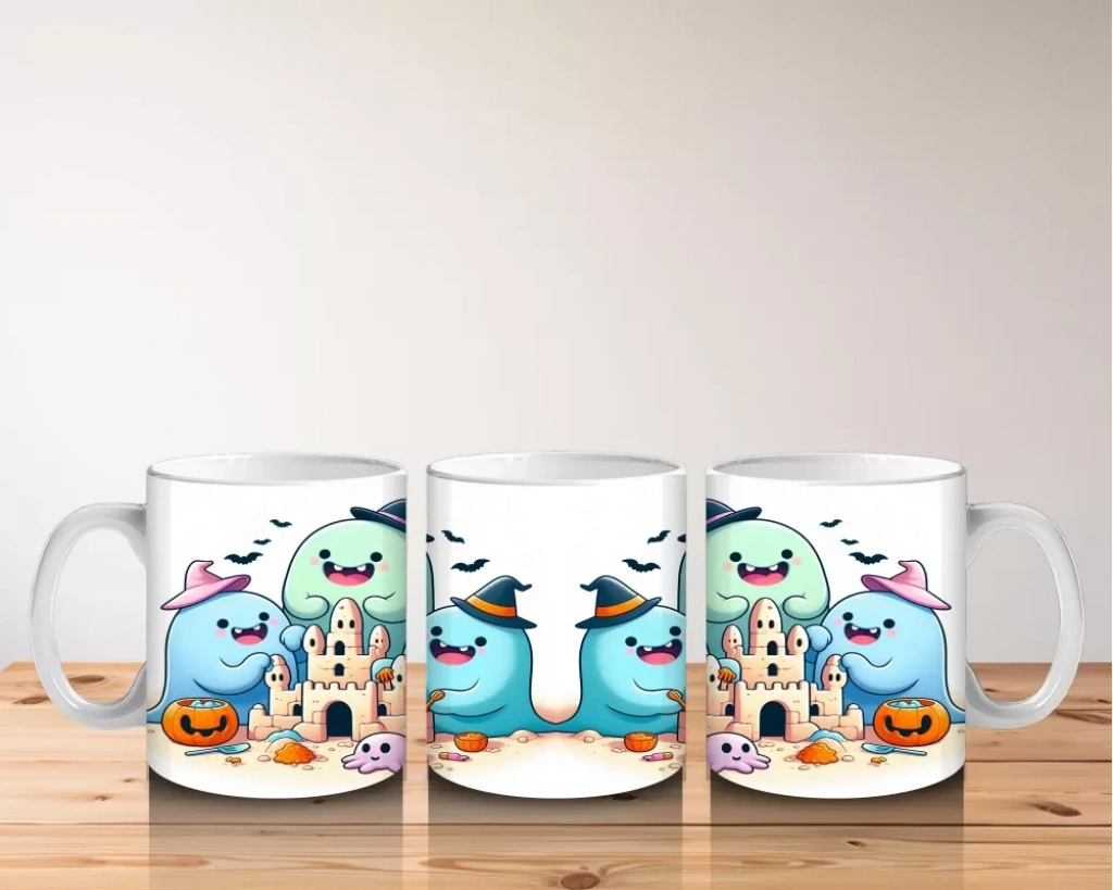 Sevimli hayaletler ve rengarenk şekerlemeler temalı bu kupa bardak, Cadılar Bayramı kutlamalarınıza tatlı bir dokunuş yapar.