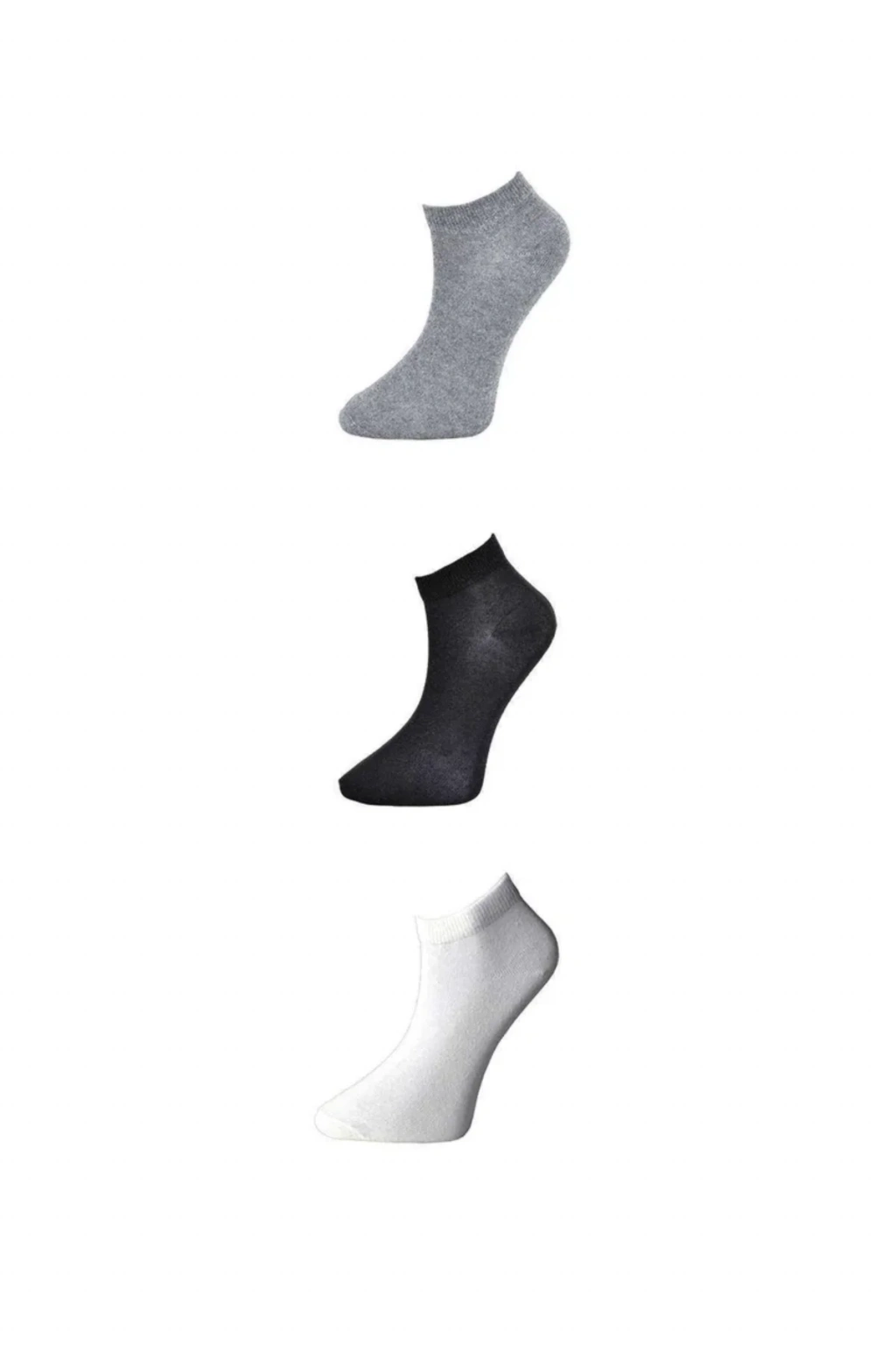 Siyah Gri ve Beyaz Kadın Bilek Çorap 3 çift