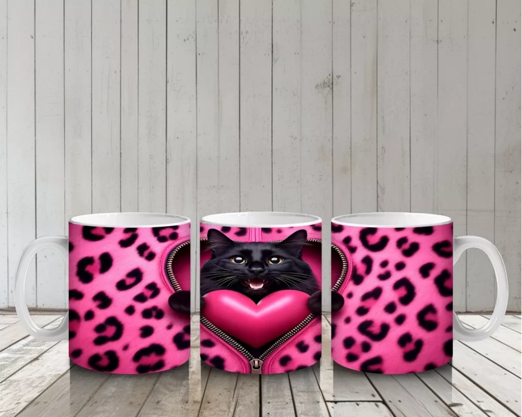 Siyah Kediler ve Pembe Kalp – Baskılı Kahve Kupası