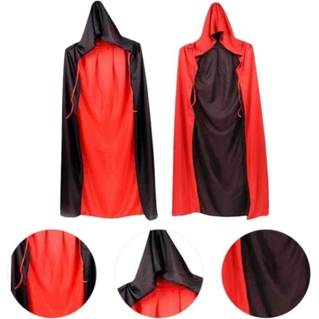 SİYAH KIRMIZI ÇİFT TARAFLI KAPİŞONLU PELERİNÜrün ÖzellikleriMalzeme: Yumuşak ve dayanıklı kumaştan üretilmiştir.Renk: Bir tarafı siyah, diğer tarafı kırmızı. Çift taraflı kullanım imkanı sağlar.Boyut: 140 cm uzunluğunda, yetişkin bireylere uygun.Kapişon: Geniş ve rahat kesimi ile şık bir görünüm sunar.Kullanım Alanı: Cadılar Bayramı, tiyatro gösterileri, temalı partiler ve kostüm etkinlikleri için ideal.Tasarım: Hafif yapısıyla rahat taşınabilir, bağcık detaylı kapişon.Paket İçeriği1 Adet Siyah Kırmızı Çift Taraflı Kapişonlu Pelerin (140 cm)