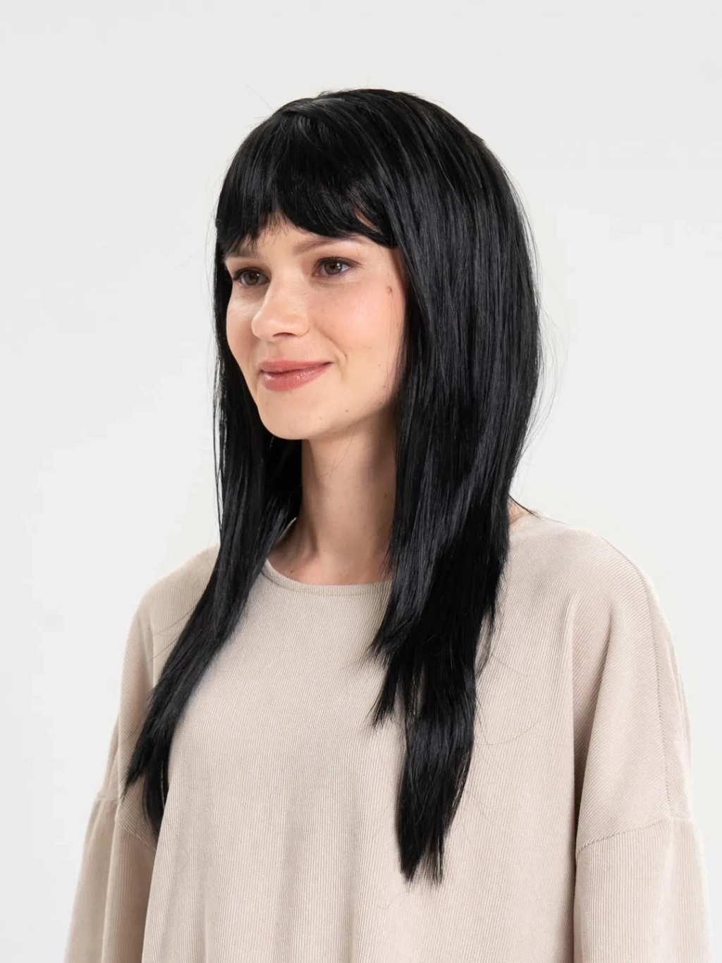 Kahve Renk Uzun Düz Parti Peruğu - Uzun Kahverengi Peruk