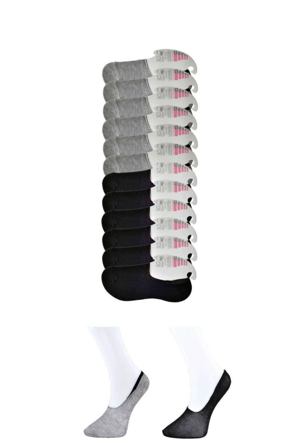 Siyah ve Gri Kadın Babet Çorap 12 çift