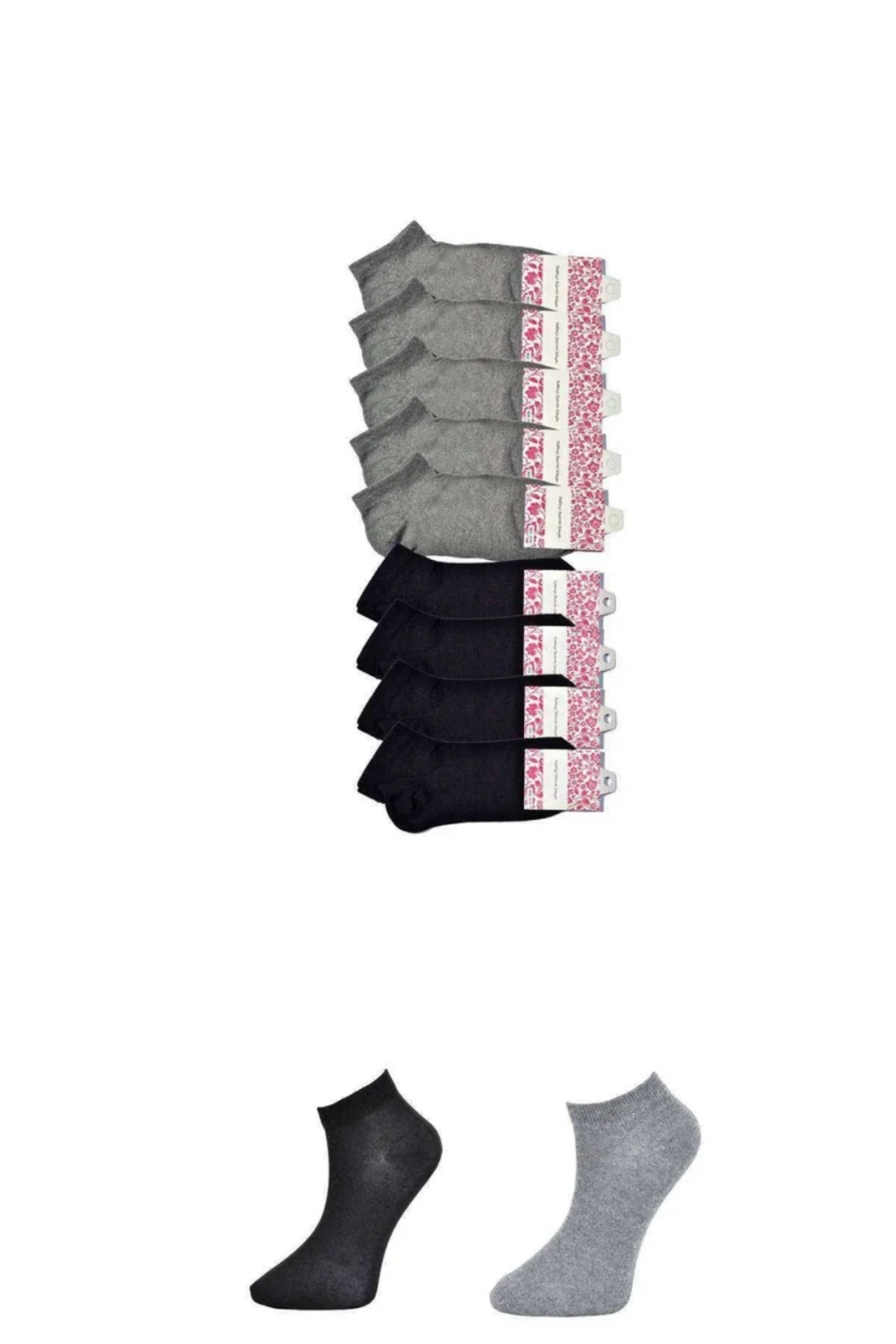 Siyah ve Gri Kadın Bilek Çorap 9 çift