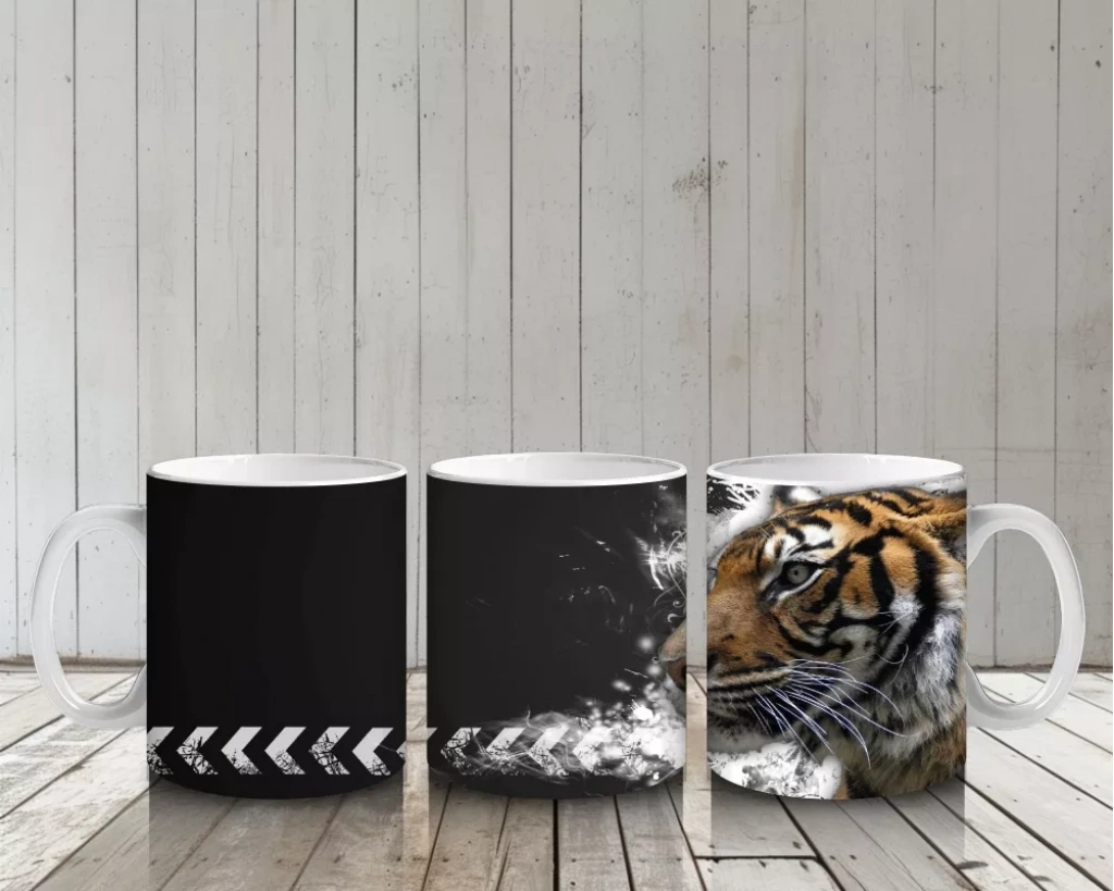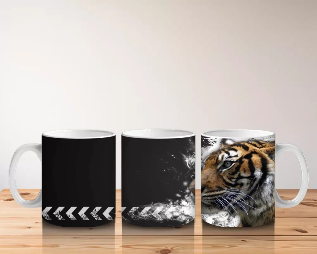 Siyah Zemin Üzerinde Kaplan Portresi – Baskılı Kahve Kupası