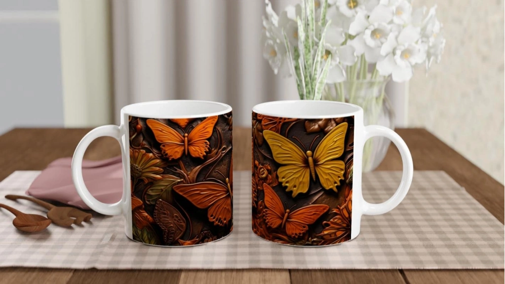 Sonbahar Renklerinde Kelebekler Temalı Baskılı Kupa Bardak, doğanın dönüşümünü zarif detaylarla sunuyor. Yapraklar ve kelebeklerle süslenen bu özel tasarım, her içimde nostaljik bir sonbahar esintisi taşıyor.