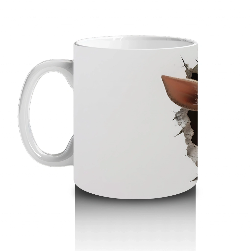Duvarı delip çıkan 3D efektli geyik yavrusu, St. Patrick şapkasıyla tam bir şans elçisi! Gerçekçi görünümü ve sevimli ifadesiyle hem eğlenceli hem de dinamik bir kupa deneyimi sunuyor.