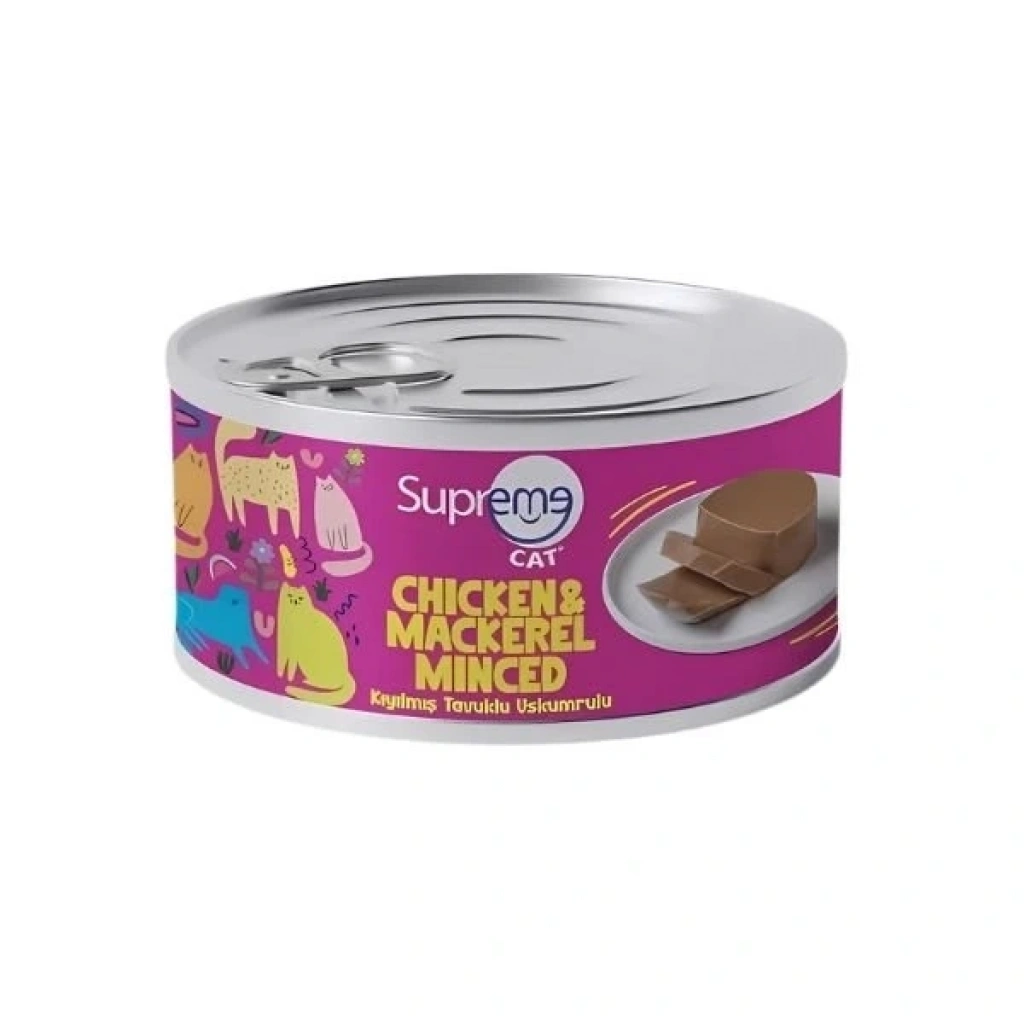 Supreme Cat Kıyılmış Tavuklu ve Uskumrulu Yetişkin Konserve Kedi Maması 1 Adet 85 Gr