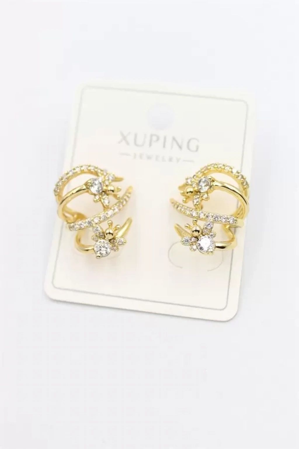 Taşlı Çoklu Görünümlü Küpe - Altın