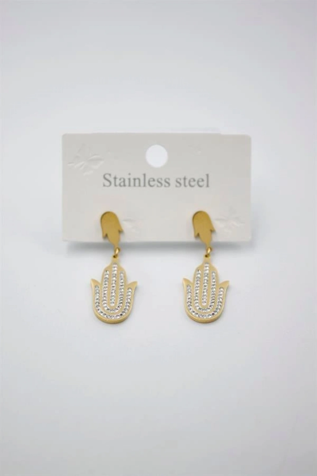 Taşlı Fatıma Eli Küpe - Altın