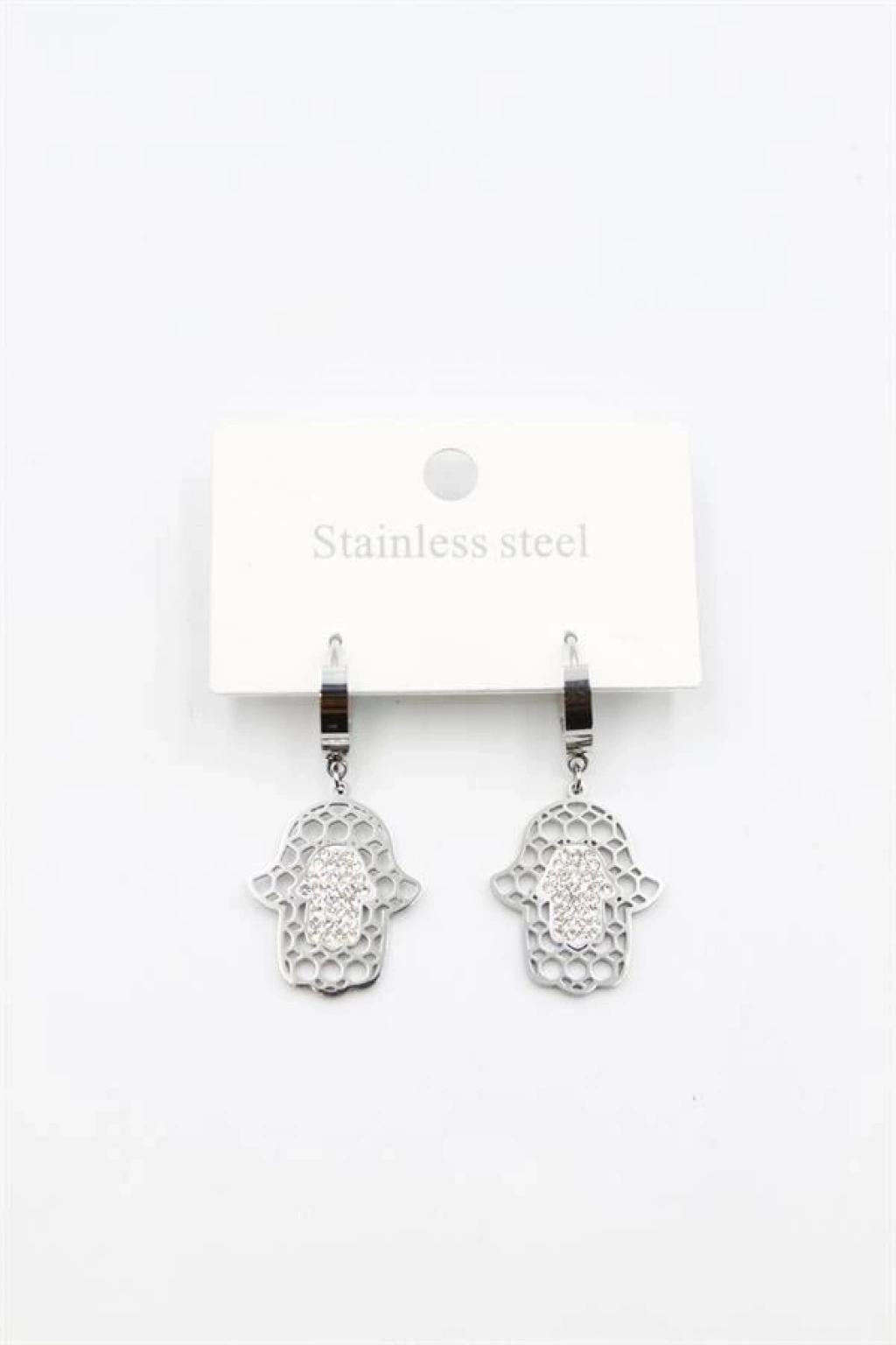 Taşlı Fatıma Eli Küpe - Gümüş