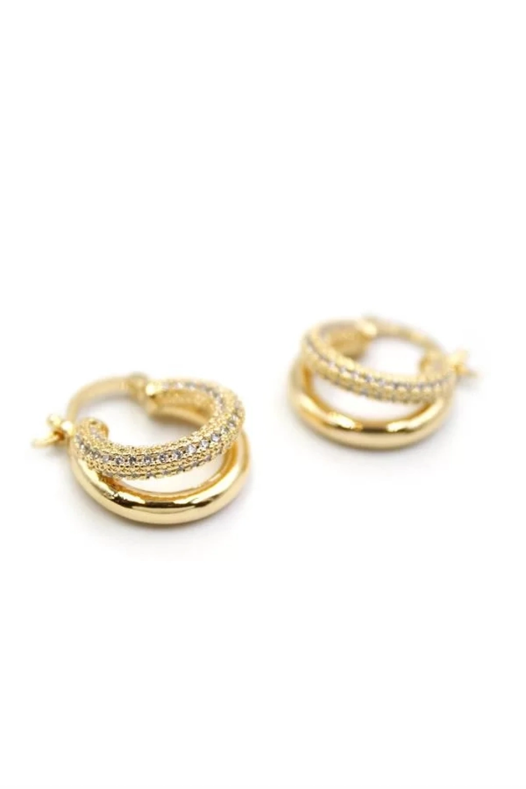 Taşlı Halka Küpe - Altın