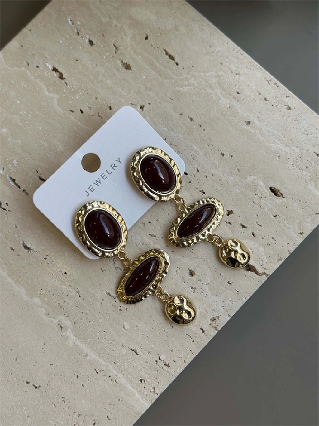 Taşlı Küpe - Kahverengi