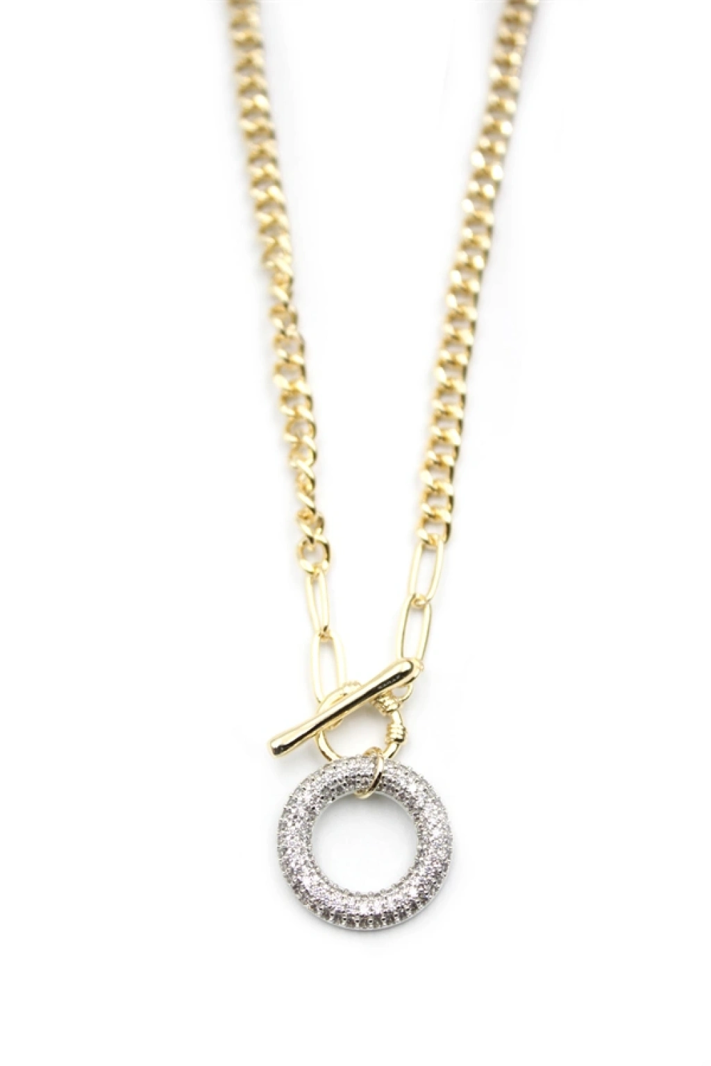 Taşlı Zincir Kolye - Altın
