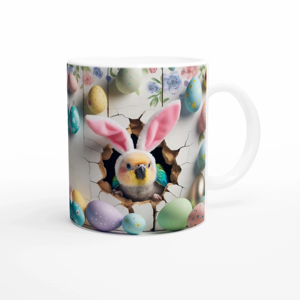 Tavşan Kulaklı Papağan ve Paskalya Yumurtaları Temalı Baskılı Kupa Bardak