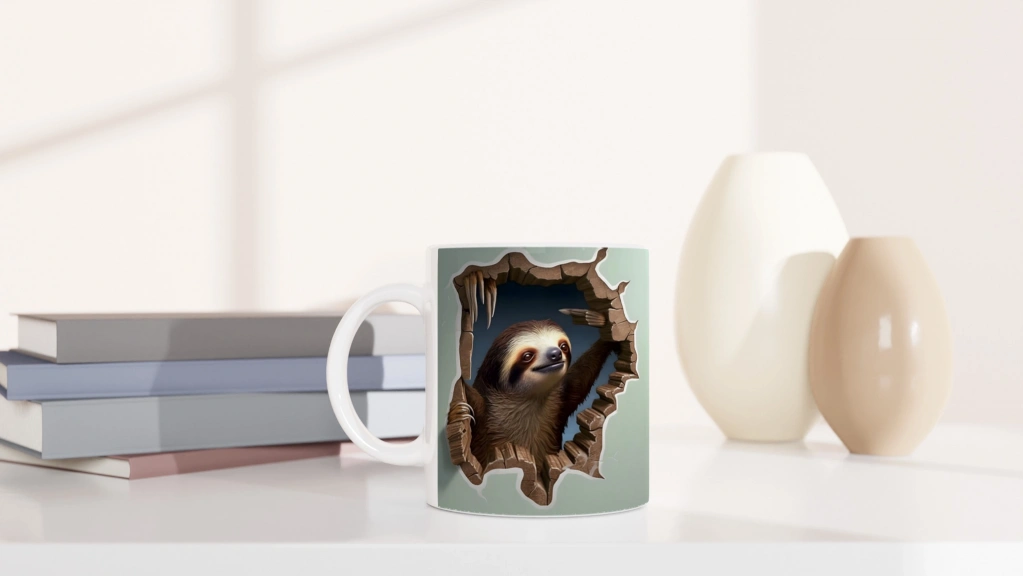 Tembel Hayvan Baskılı Kupa Bardak, yavaş yaşamın huzurunu yansıtan özel bir tasarımla geliyor.