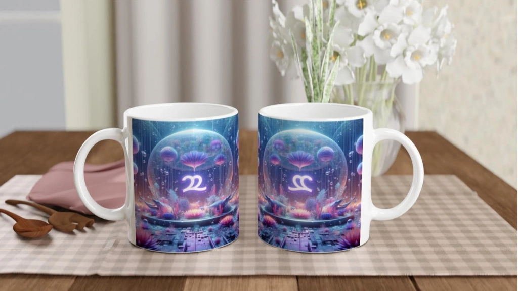 Zarafet ve dengeyi temsil eden Terazi burcu için hazırlanan bu astral denizaltı dünyası temalı kupa, sualtının büyüleyici simetrisiyle stilinizi tamamlıyor.