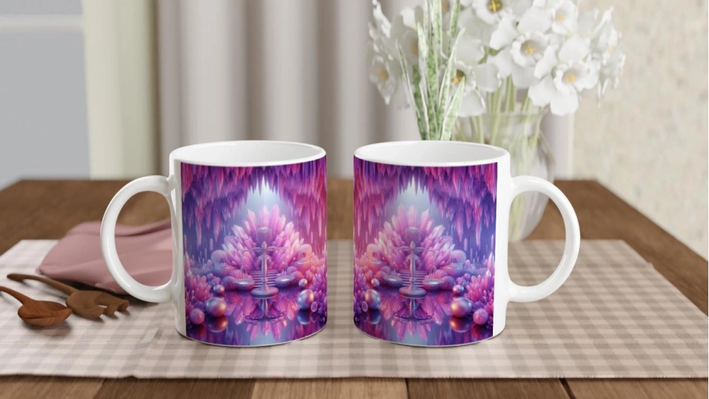 Sanat ve güzellik tutkunu Terazi burçları için, kristal mağaranın huzur dolu enerjisiyle tasarlanan bu kupa, ruhunuza estetik bir dokunuş sağlar.