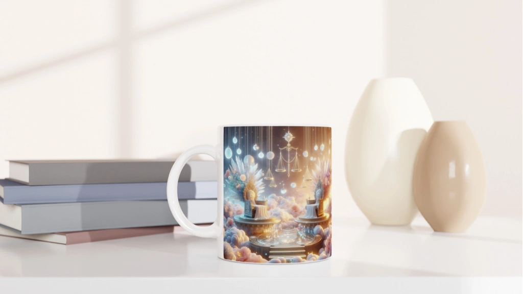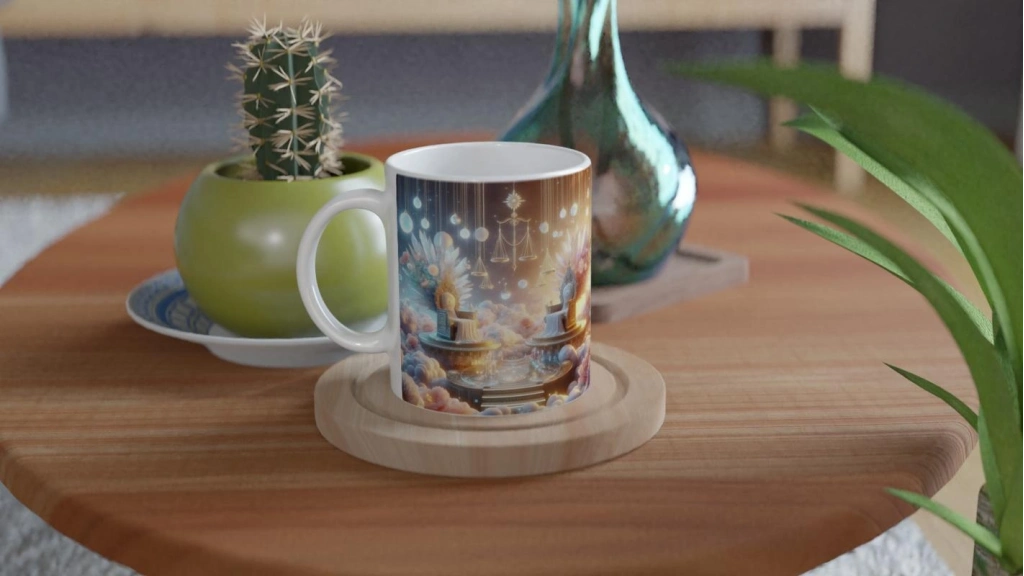 Terazi Burcu Baskılı Kahve Kupası - Elementsel Doğa Krallığı Temalı Vs4
