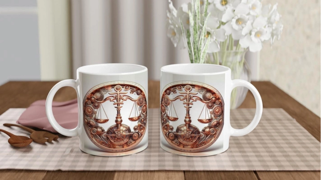 Adalet ve uyum arayan Terazi burcu için tasarlanan bu özel kupa, astrolojik mekanizmanın en dengeli ve zarif yüzünü taşıyor.
