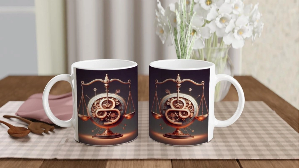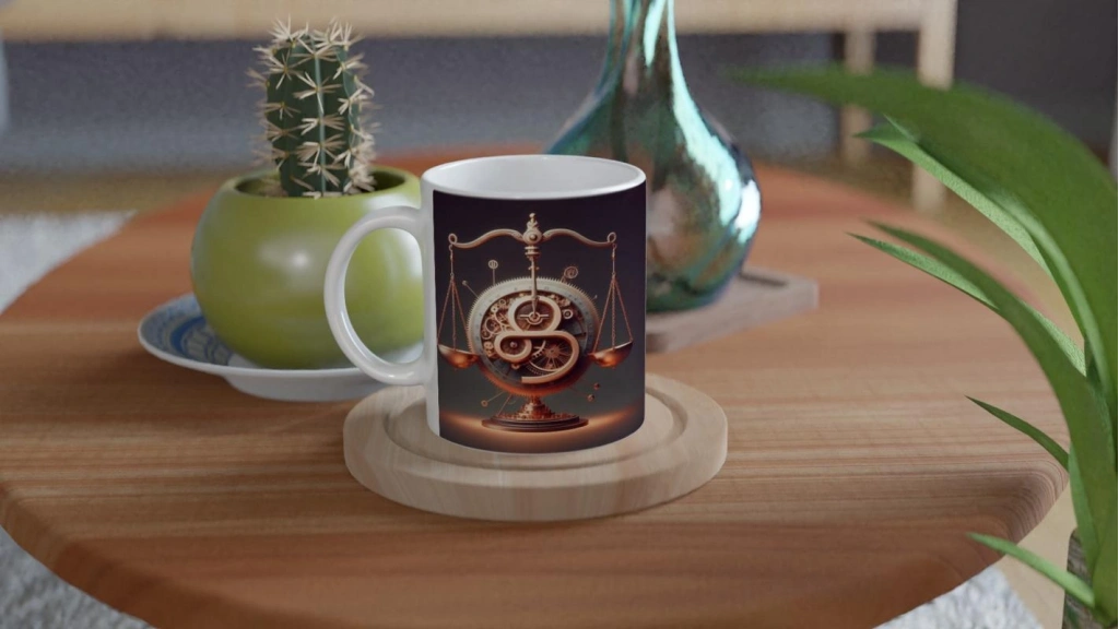 Bu özel kupa, Terazi burcunun sosyal ve dengeli doğasını Zamanın Çarkları’nın ritmiyle birleştiriyor. Uyumun estetik hali elinizde.