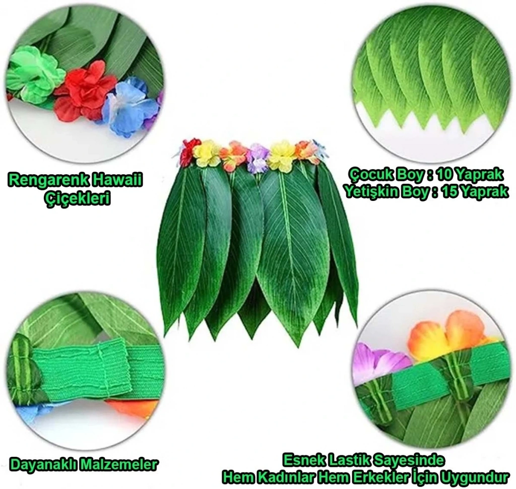 Çocuklarınızın enerjik ve neşeli havasını yansıtan bu şık tropikal esintili Hawaii yapraklı parti eteği, yaz etkinlikleri, doğum günü partileri, plaj gezileri ve daha pek çok özel an için mükemmel bir tercih! Canlı renkler ve tropikal desenler ile miniklere özgürce hareket edebilecekleri rahat bir şıklık sunuyor.