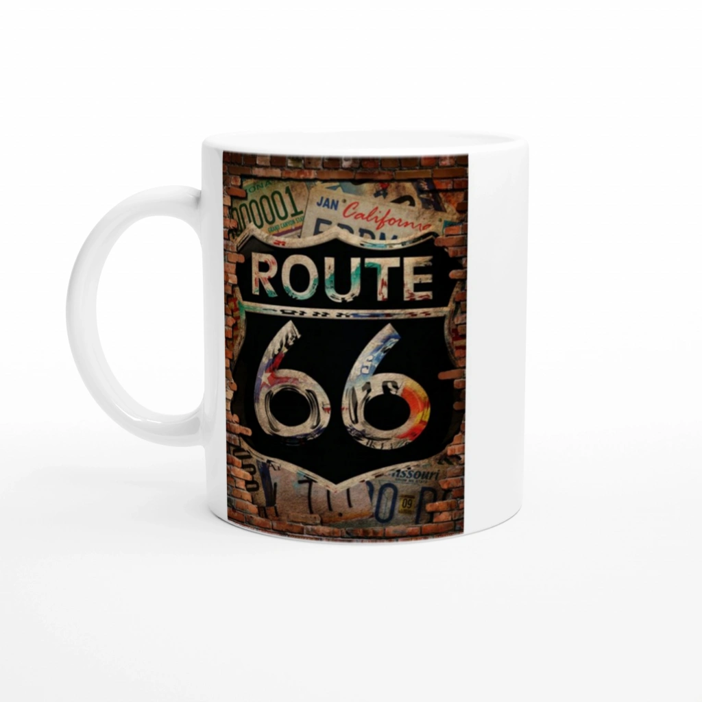 Tuğla Duvar Üzerinde Route 66 Baskılı Kupa Bardak