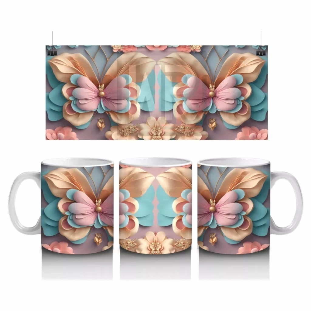 Turkuazın ferahlatıcı etkisiyle bütünleşen bu kelebek ikilisi, çiçek desenleriyle tamamlanarak canlı ve dengeli bir kompozisyon sunuyor. Enerjik ve estetik bir tasarım arayanlara özel.
