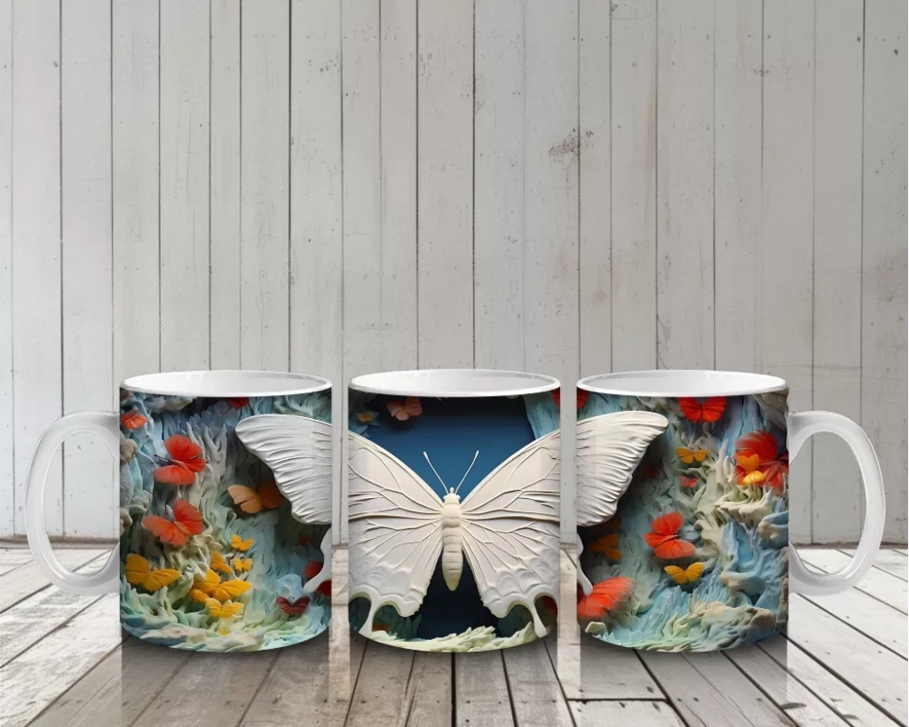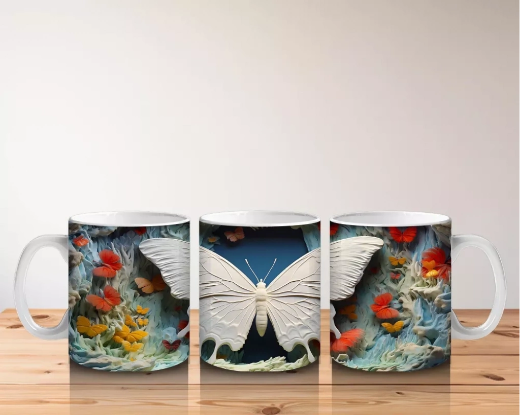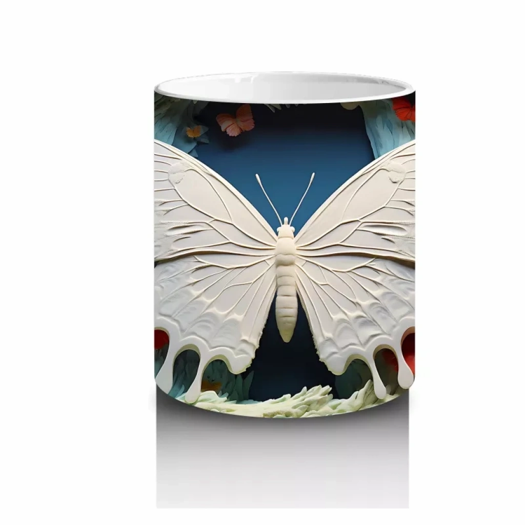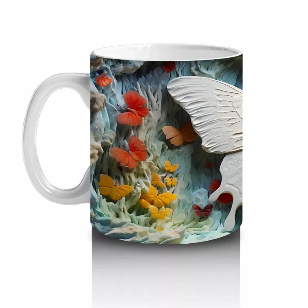 Turuncu Mavi Renkli Tünelde Kelebek – Baskılı Kupa