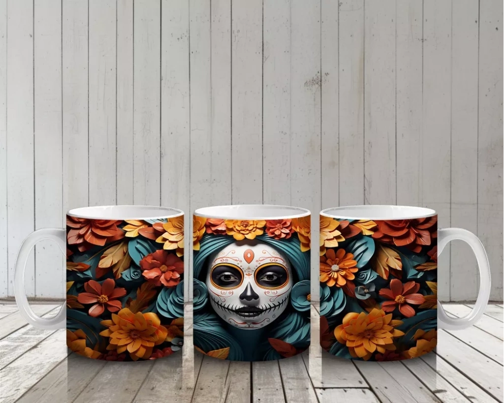 Turuncu ve Mavi Yapraklar Arasında Kafatası – Hediyelik Kahve Kupası Canlı sonbahar yapraklarıyla çevrili bu Cadılar Bayramı temalı baskılı kupa, doğa ve gotik tasarımı bir araya getiriyor. Estetik bir hediyelik kahve kupası alternatifi arayanlar için birebir.