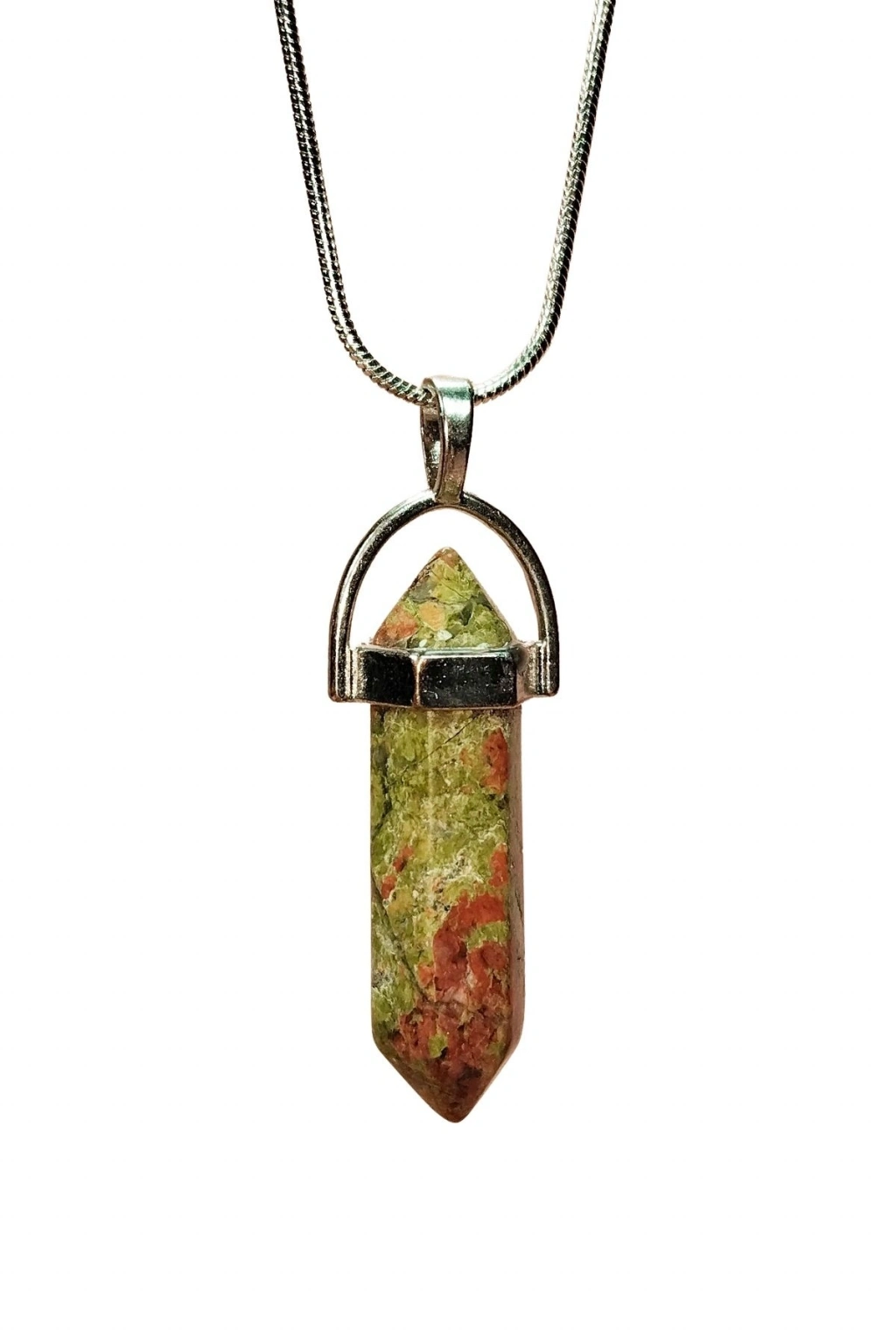 Unakit Doğal Taşı Zincirli El Yapımı Kolye Uç: 3 cm Zincir: 20 cm Kutulu