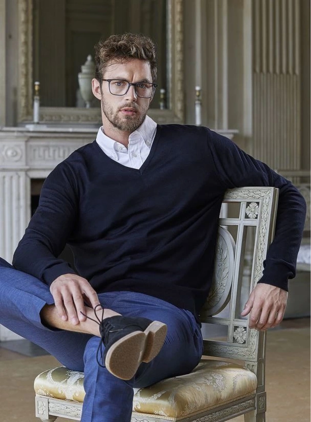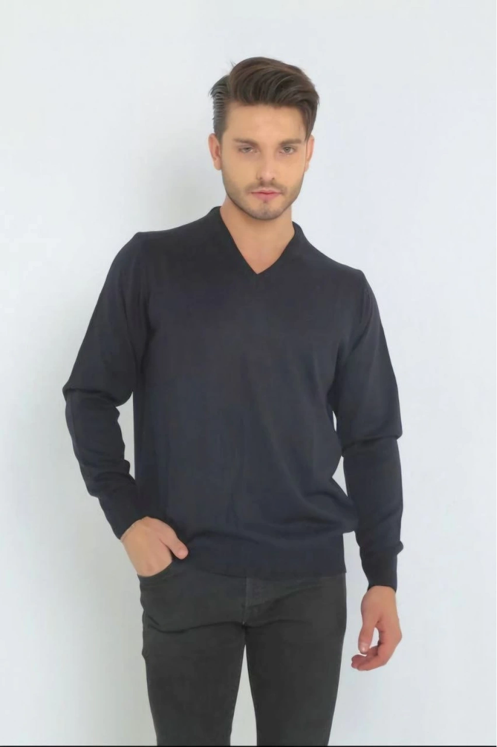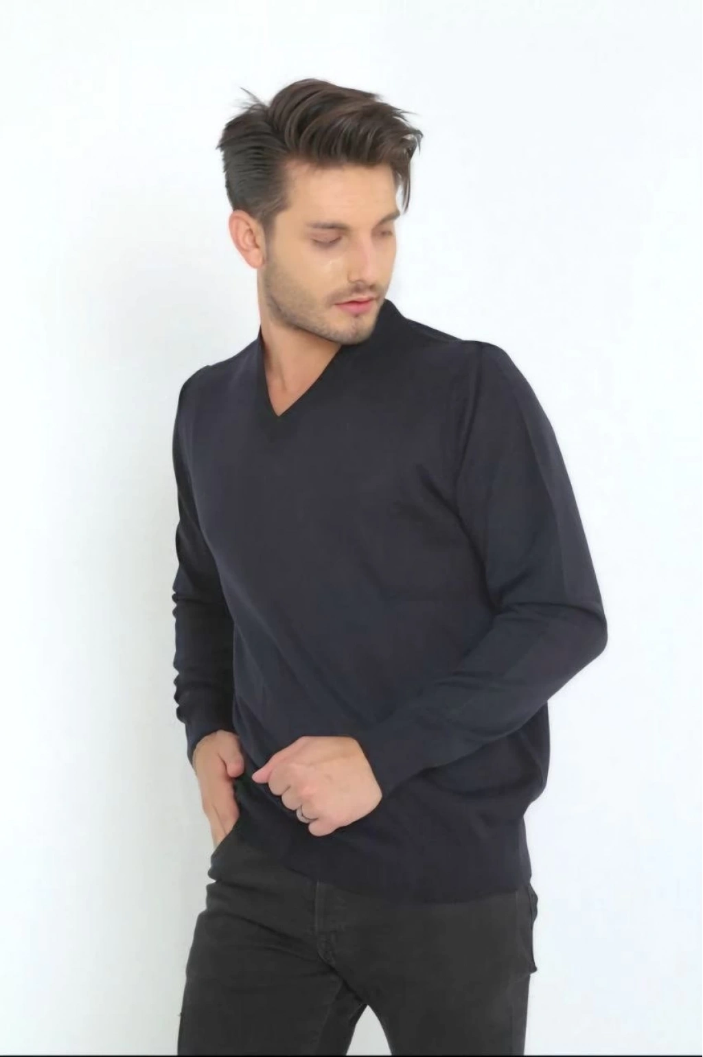 Uzun Kol V Yaka Triko Kazak - Lacivert