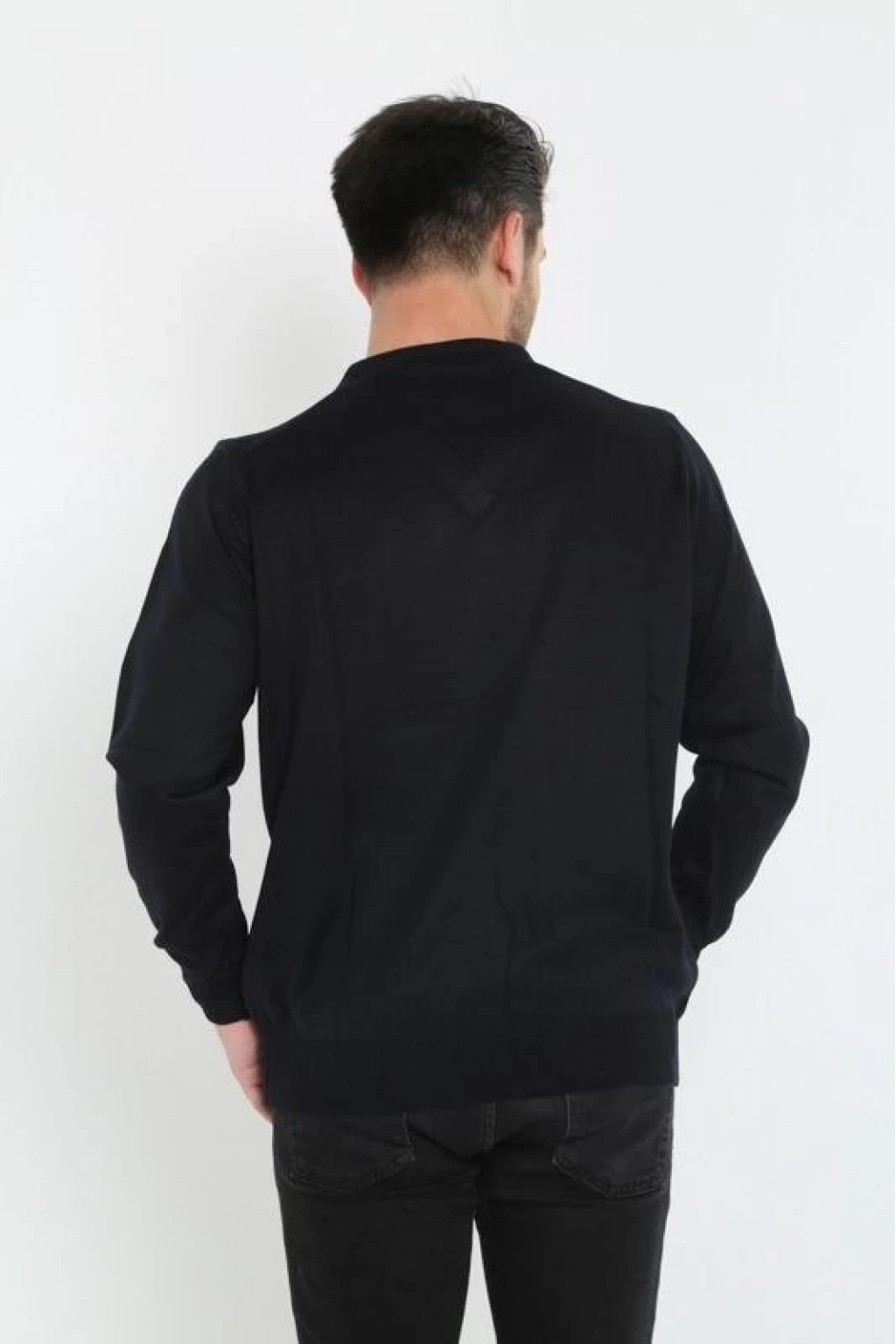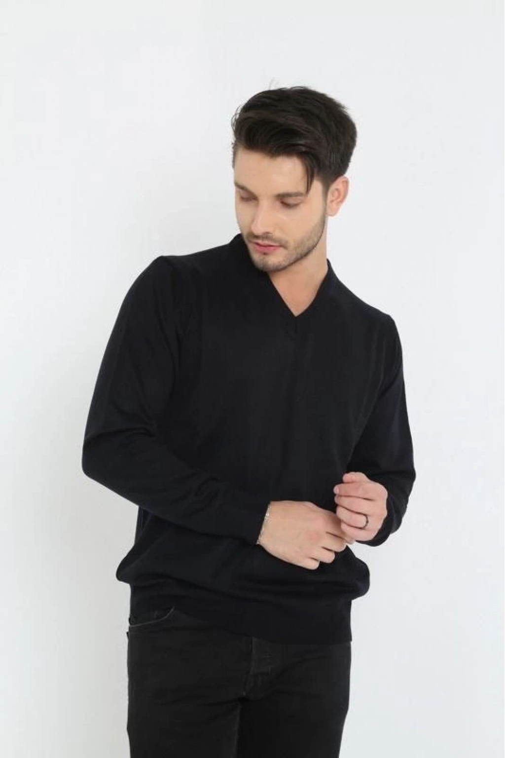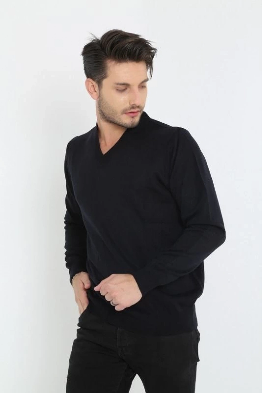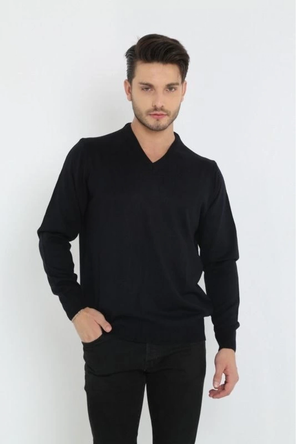 Uzun Kol V Yaka Triko Kazak - Siyah