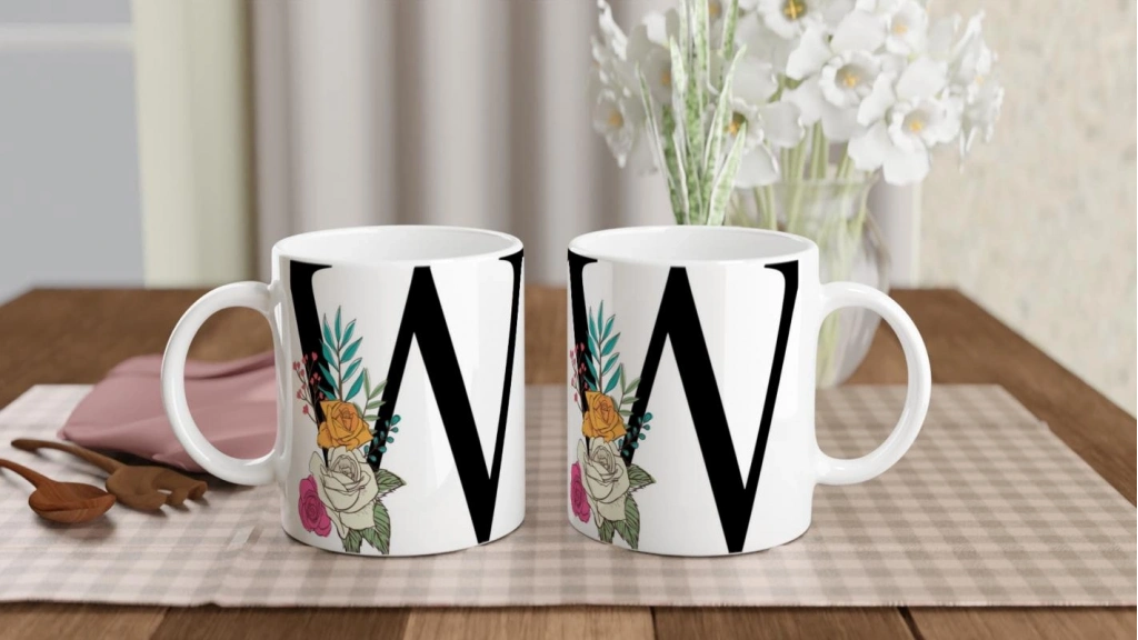Doğayla iç içe bir tasarım arayanlara özel hazırlanan bu v harfi baskılı kupa bardak, her yudumda şıklık hissettiriyor.