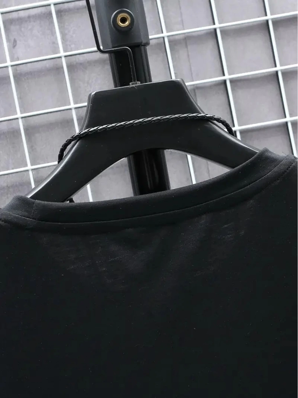 20/1 Penye Compack FUTRE Baskılı Oversize Kısa Kol Bisiklet Yaka T-shirt - Siyah -
