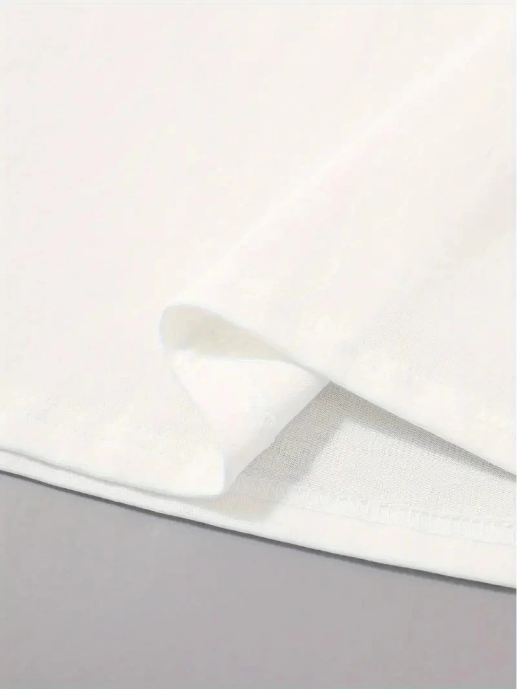 20/1 Penye Compack Sarj %1 Baskılı Oversize Bisiklet Yaka Kısa Kol Yazlık T-shirt - Beyaz -