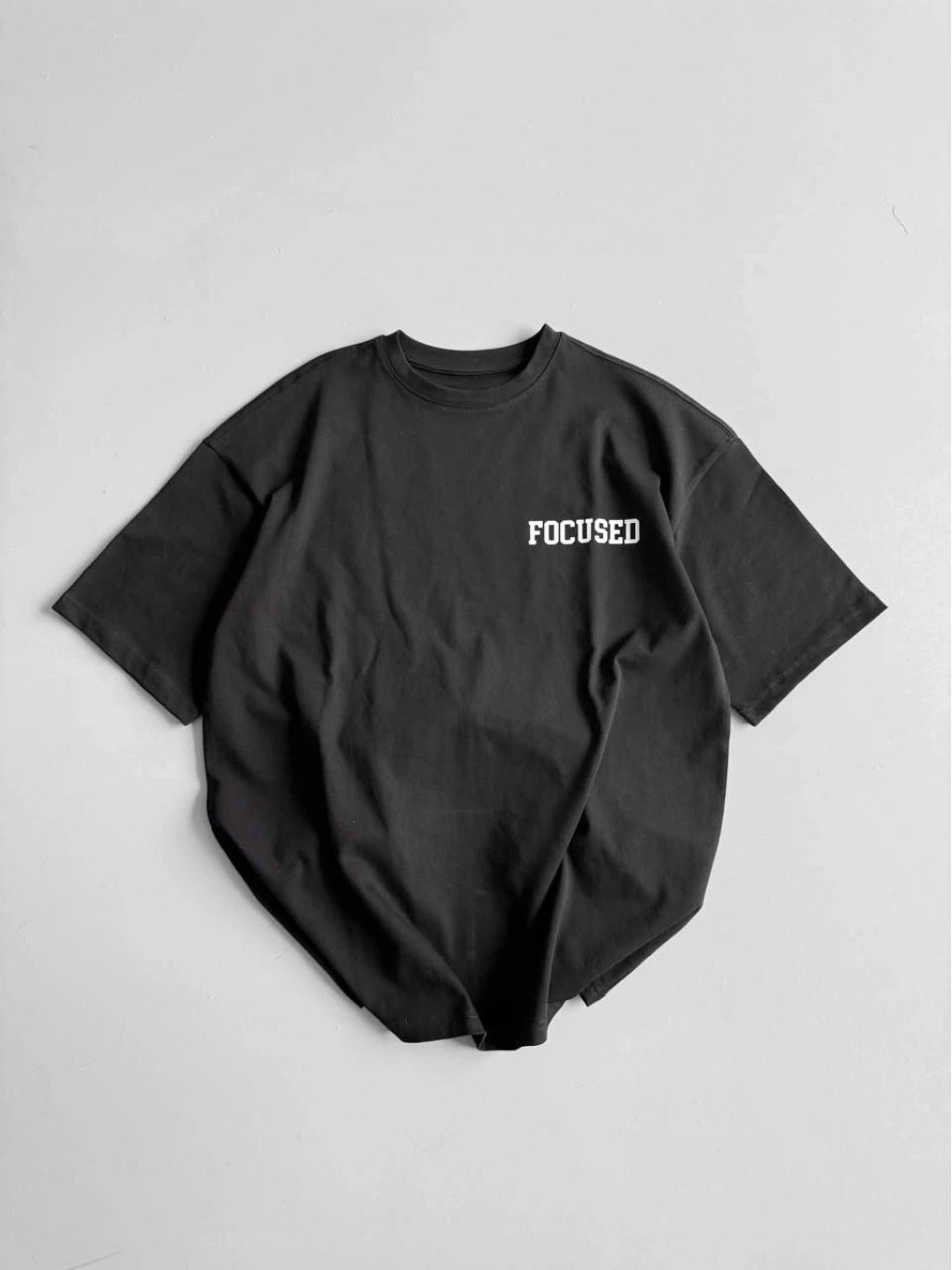 20/1 Penye CompackBaskılı Oversize Bisiklet Yaka Kısa Kol Yazlık T-shirt - Siyah -
