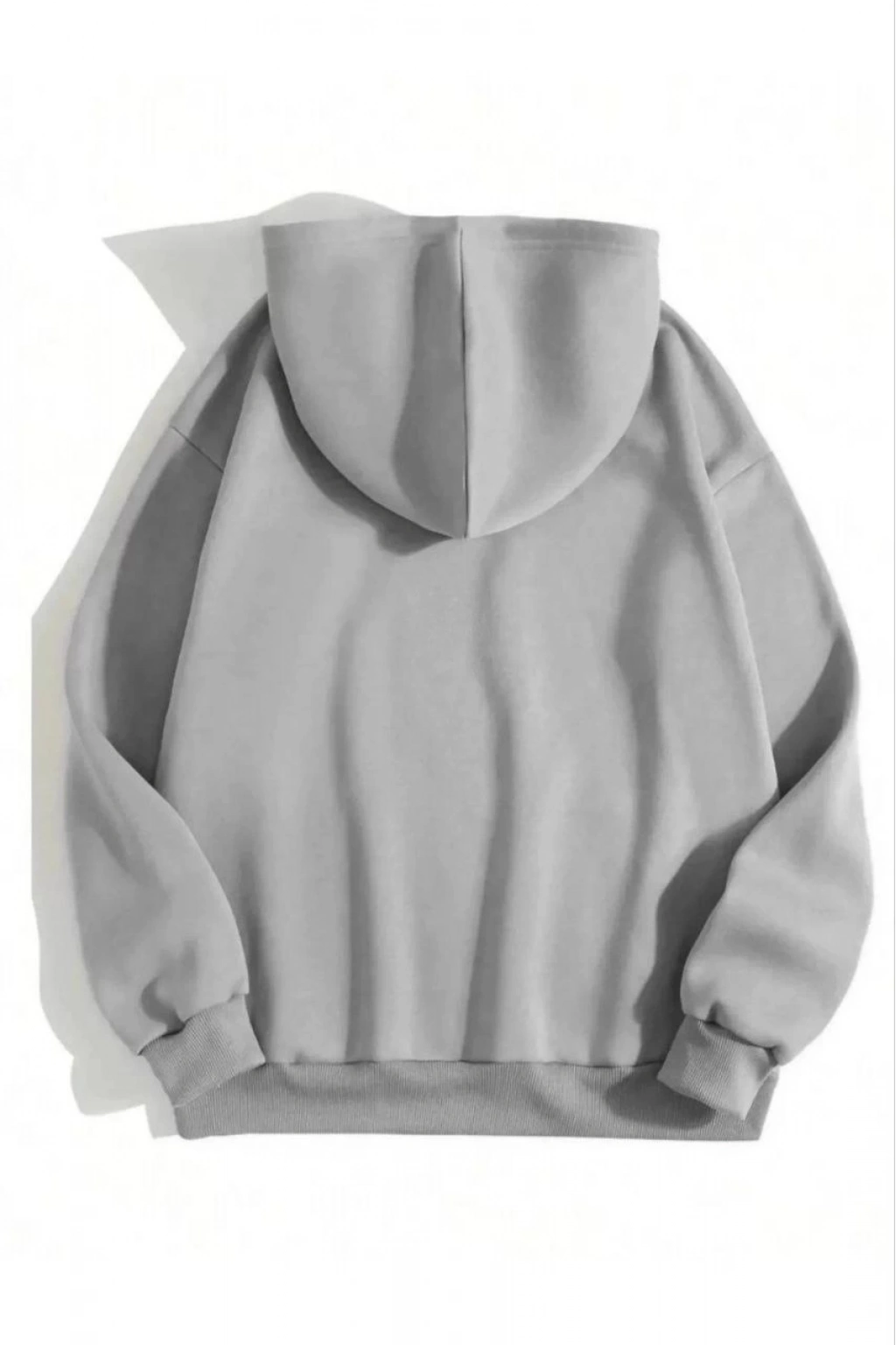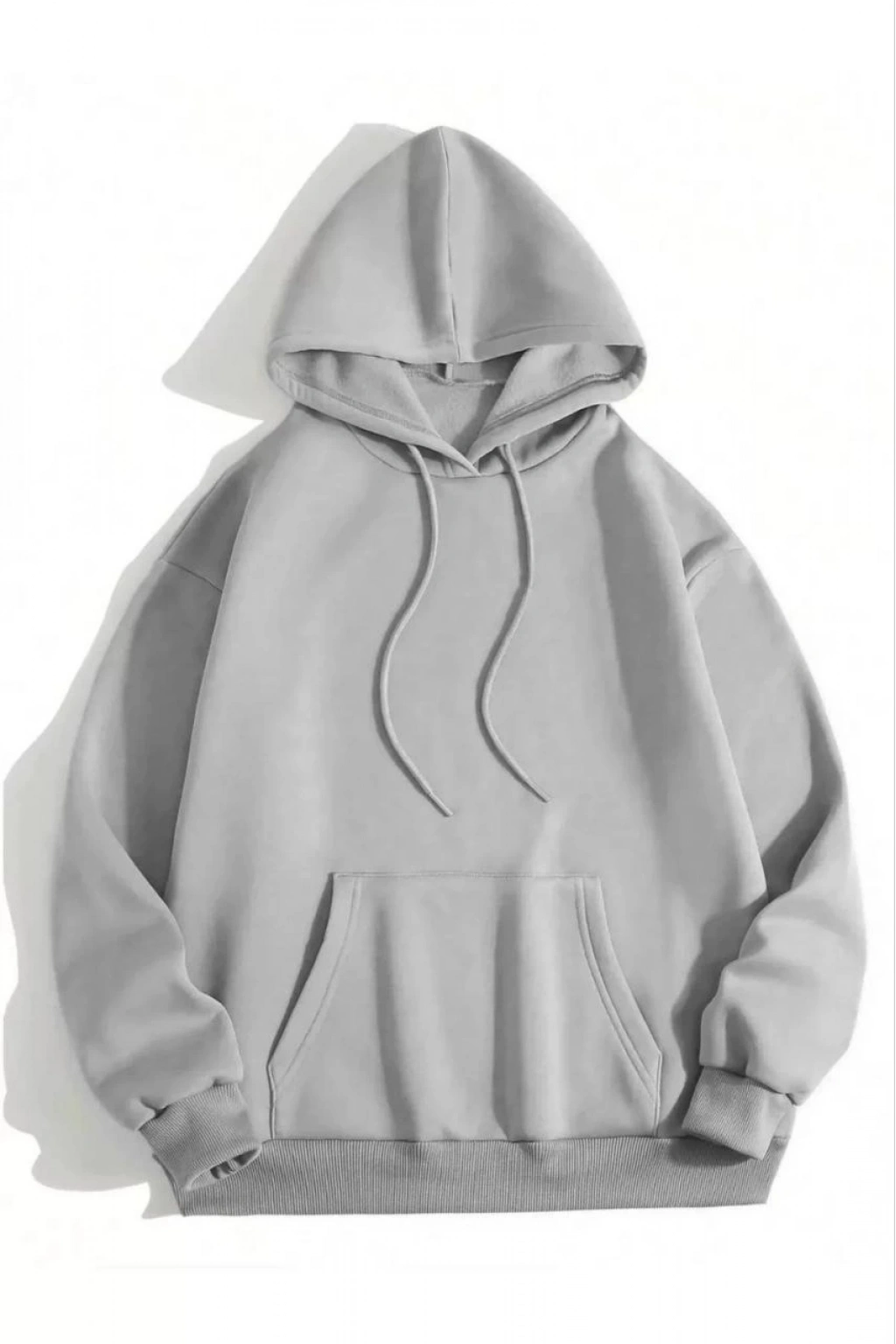 3 İplik Pamuklu Kapşonlu Sweetshirt - Gri -